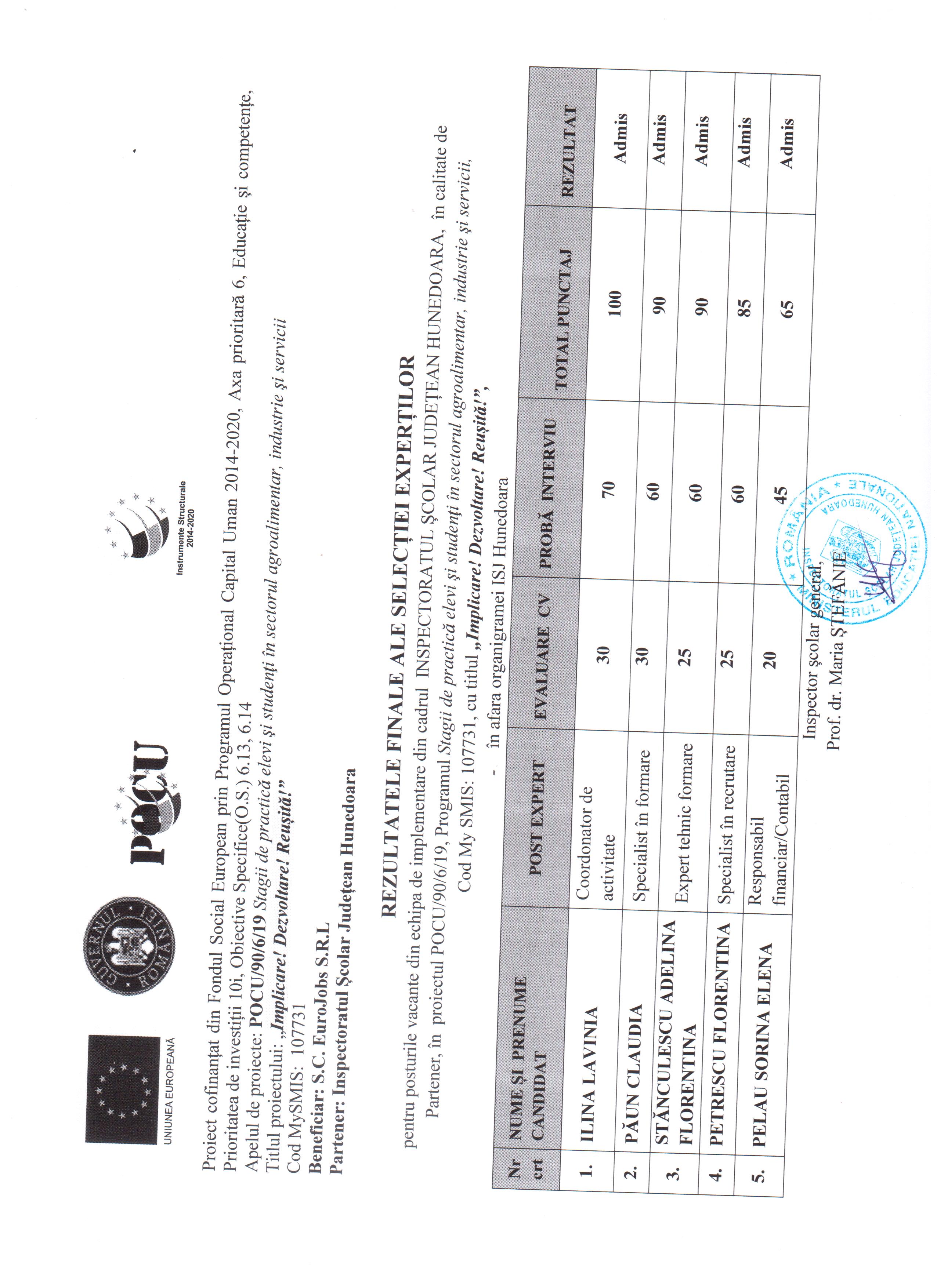 Rezultate selectie experti