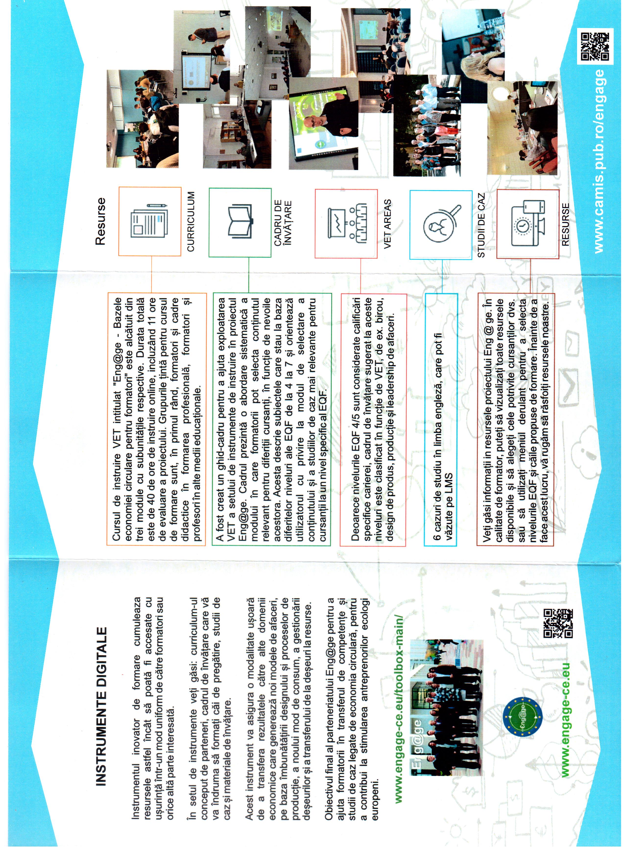 Pe platforma e-learning a programului de formare http://www.camis.pub.ro/engage găsiți resurse de învățare pentru formatori astfel încât să se încurajeze dezvoltarea unei noi mentalități antreprenoriale bazate pe conceptul de economie circulară.