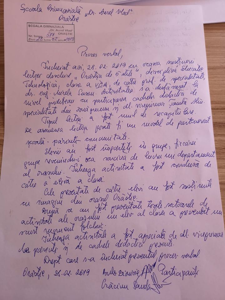 JOI, 28.02.2019, ora 13.00, Şcoala Gimnazială "Dr. Aurel Vald" Orăştie, a gazduit lectia deschisa ” Orastia de 5 stele” din cadrul cercului metodic judeţean Educatie tehnologica.