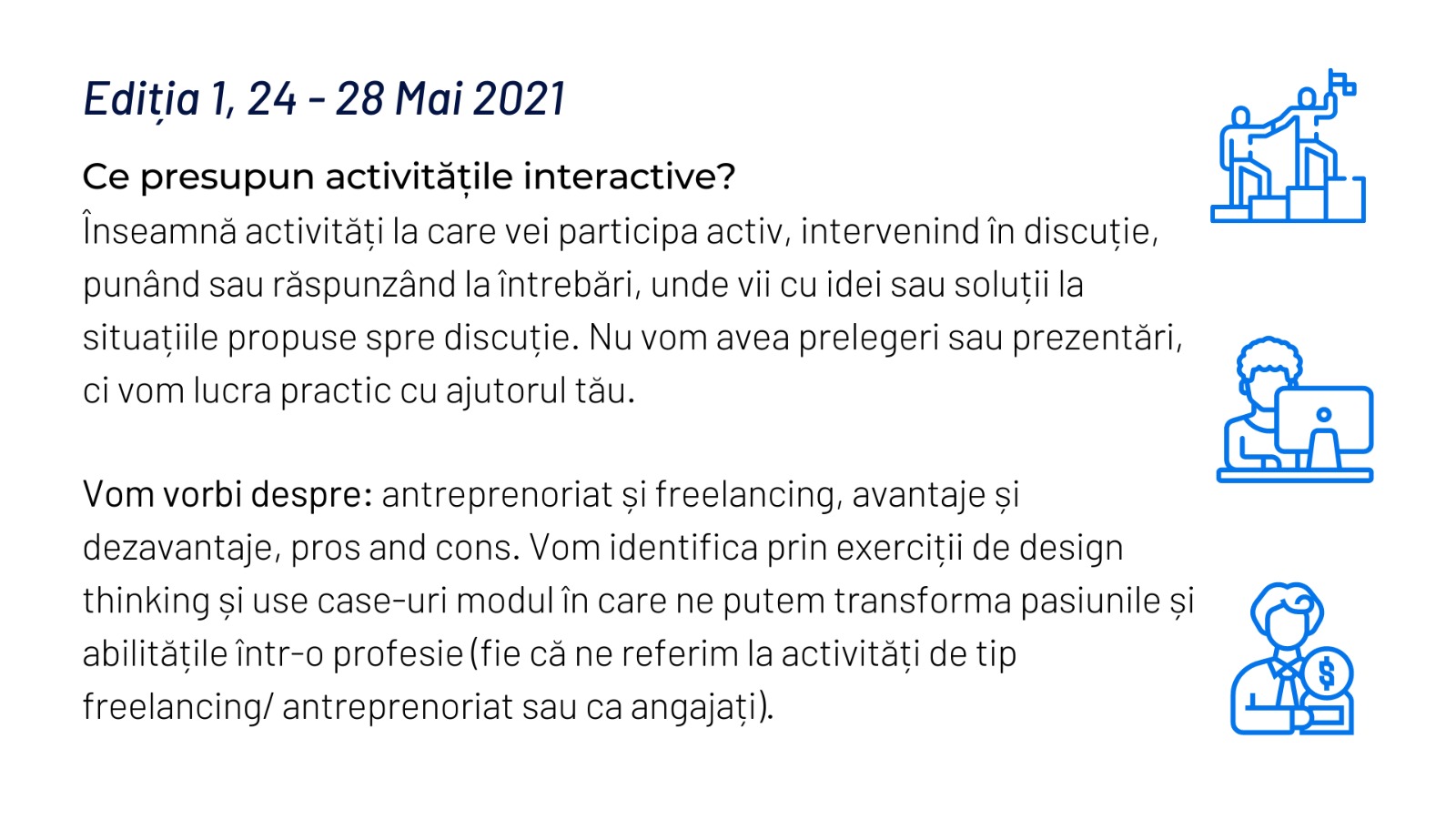 Asociația și IBM România anunță organizarea unei Tabere online de Antreprenoriat și Freelancing pentru elevii cu vârsta de cel puțin 16 ani împliniți.