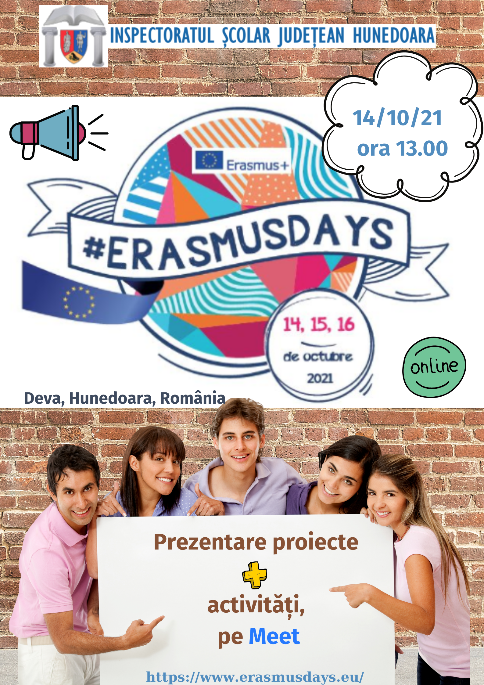 În data de 14 octombrie, începând cu ora 13.00, va avea loc activitatea online Infodays Erasmus+, schimb de bune practici educaționale europene.