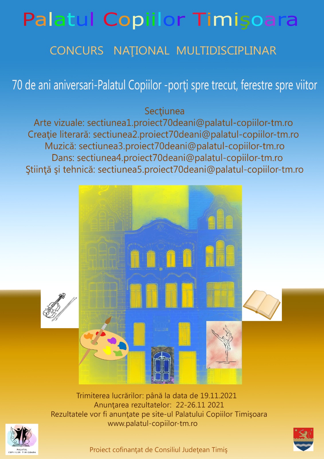 Avem deosebita placere sa impartasim cu dumneavoastra bucuria de a aniversa 70 de ani de la infiintarea Palatului Copiilor Timisoara, ocazie cu care lansam o serie de proiecte la care dorim sa ne fiti parteneri.