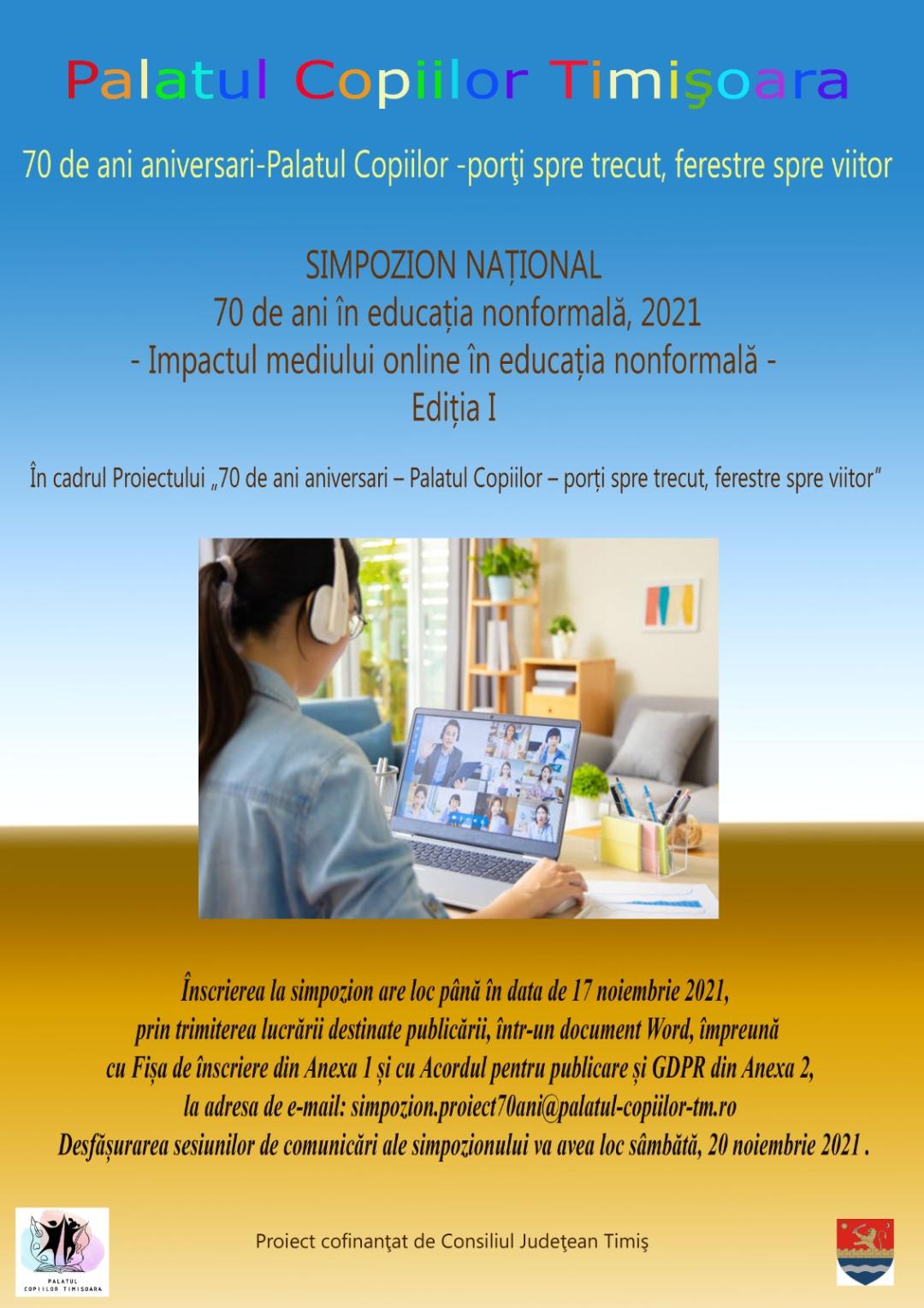 In ceas de sărbătoare, Palatul Copiilor din Timișoara, împreună cu filialele sale, Clubul Copiilor din Buziaș și Clubul Copiilor din Jimbolia, a configurat un simpozion național prin care să celebrăm împreună 70 de ani în educația nonformală, 2021.