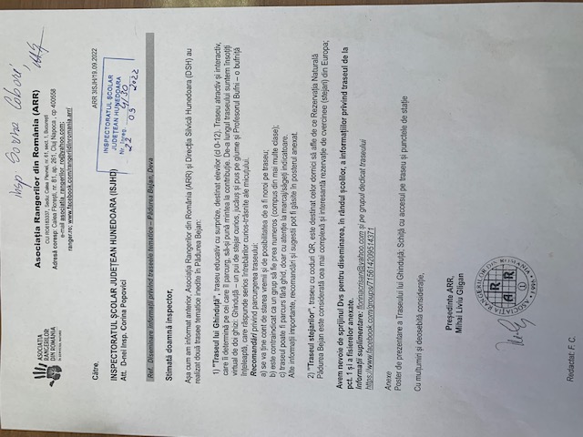 În urma adresei cu nr. 4130/22.09.2022, înregistrată la IȘJ, "Asociația Rangerilor din România" și "Direcția Silvică Hunedoara", au realizat două trasee tematice inedite, în Pădurea Bejan. Este vorba de "Traseul lui Ghinduță" și "Traseul stejarilor". Este un mod inedit de a organiza cu copiii, activități în aer liber, ce pot fi incluse în programele "Școala Altfel" sau "Săptămâna verde".