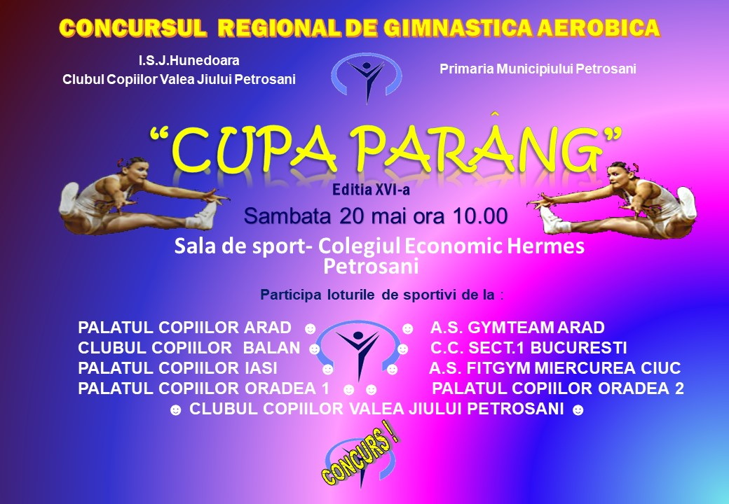 * 19.05 -20.05 2023 - Concursul regional gimnastica aerobica " CUPA PARANG " - Petrosani- ed. XVI-a