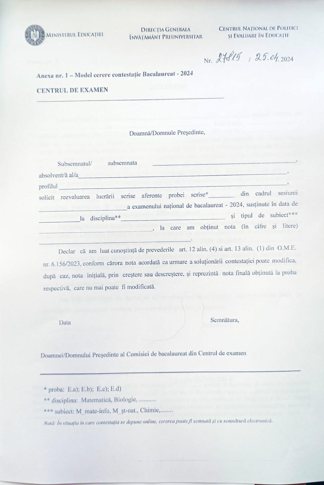 Eventualele contestații se vor depune la centrul de examen unde s-au susținut probele scrise, astăzi, 8 iulie 2024, în intervalul orar 12.00-18.00.
