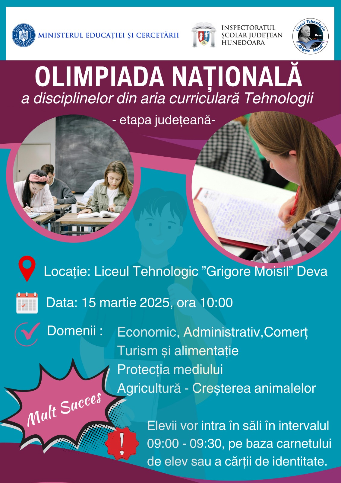 Notă cu privire la organizarea și desfășurarea Olimpiadelor din aria curriculară ”Tehnologii” – Etapa Județeană 2025