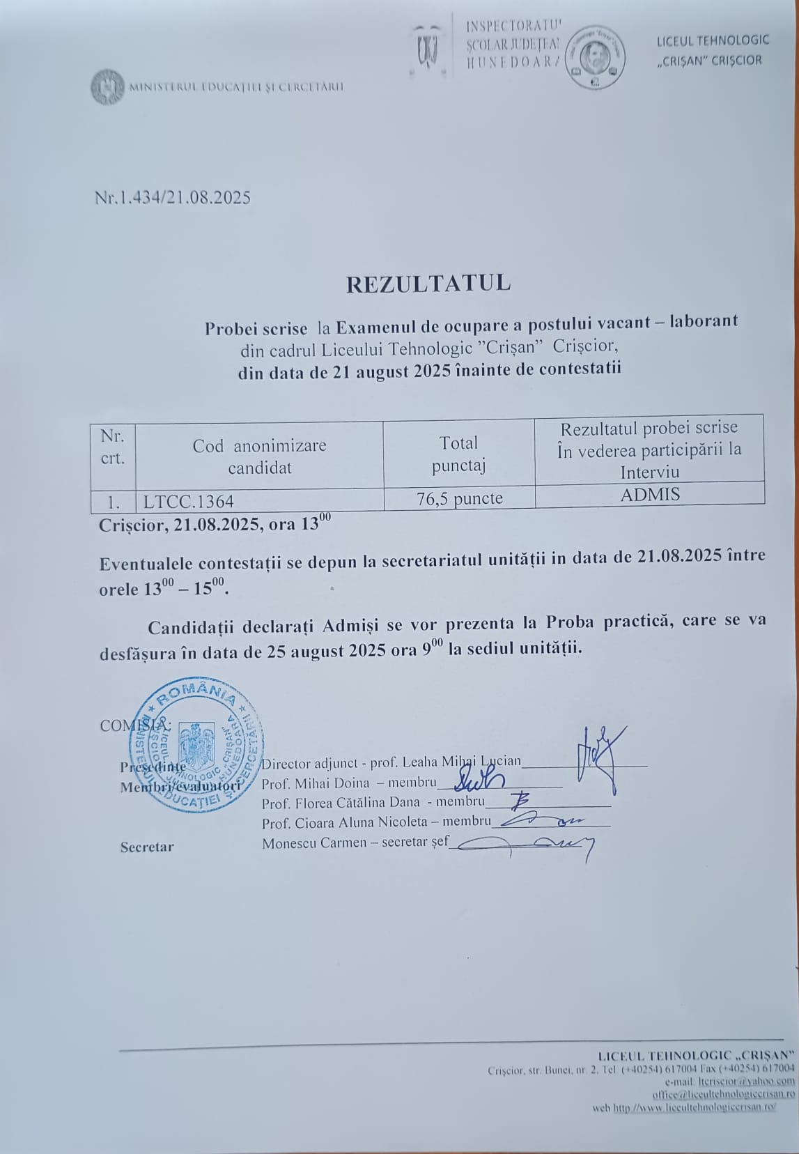 Rezultat Interviu Ocupare post laborant 26.08.2025 10.06.pdf- (344.17 KiB) Descărcat de 70 ori