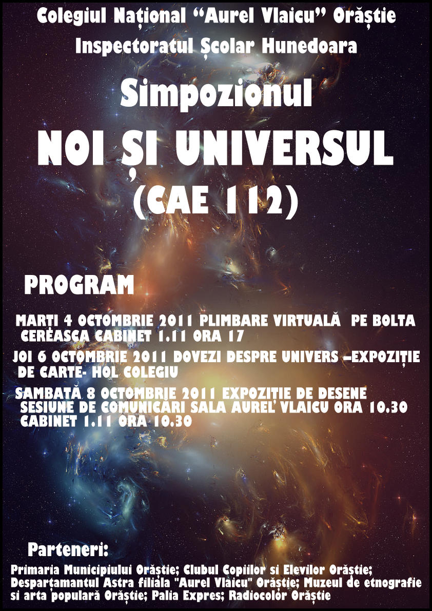 Vă invităm să luaţi parte la a III-a ediţie a simpozionului concurs "Noi şi Universul".