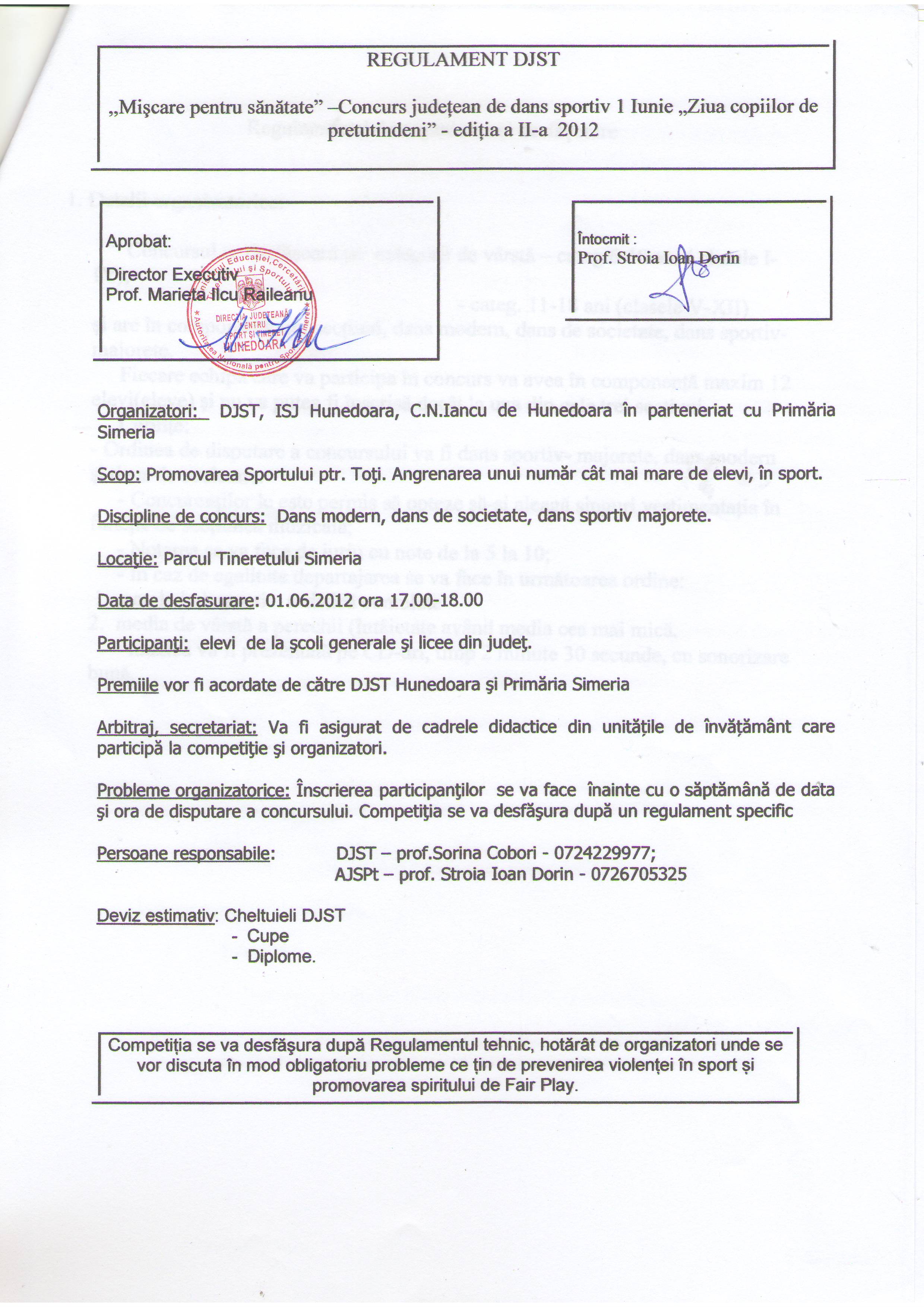 Va invitam sa participati la concursul judetean de dans modern si majorete - 01.06.2012 - "Ziua copiilor de pretutindeni" editia a II/a 2012 in Parcul Tineretului din Simeria.