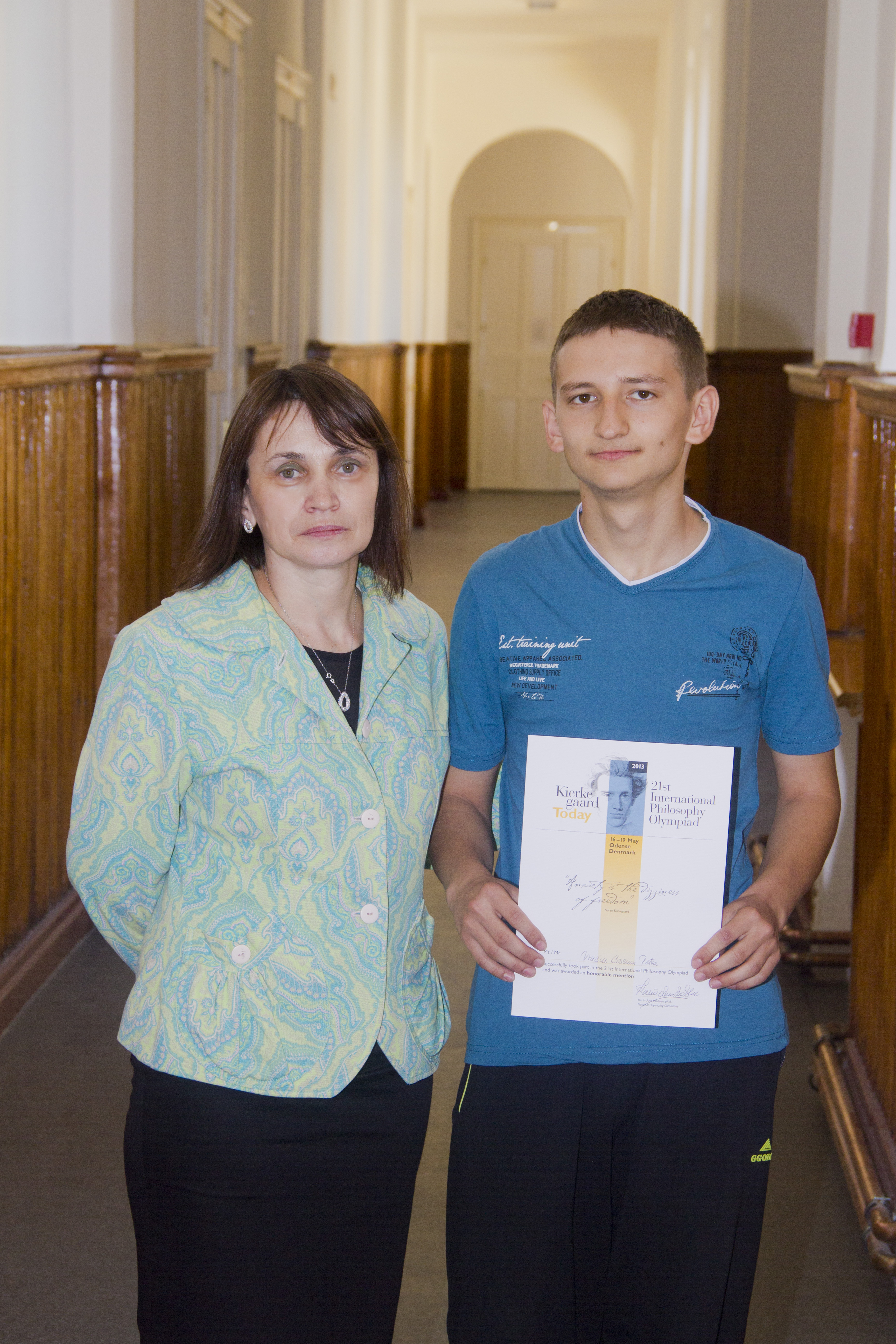 Vraciu Cosmin, elev in clasa a XI-a la Colegiul National „Decebal‟ Deva, unul dintre cei mai valoroşi filosofi liceeni din întreaga lume – a fost distins cu Menţiune la cea de-a XXI-a Olimpiadă Internaţională de Filosofie, care a avut loc în perioada 16-19 mai a.c. la Odense în Danemarca. La Olimpiadă au participat elevi din 44 de ţări. Deşi este elev în clasa a XI-a, Cosmin va studia filosofia în anul şcolar următor împreună cu profesoara Elena Lupşa, care l-a pregătit pentru această performanţă.