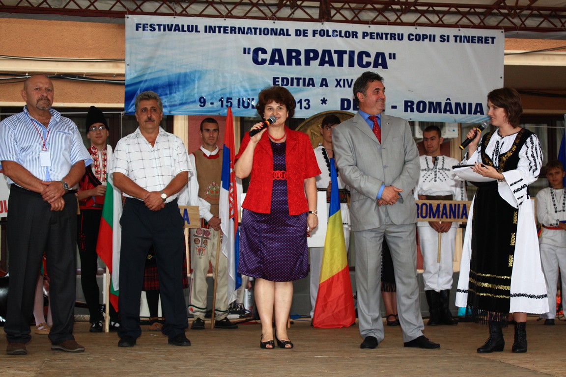 A XIV-a editie a Festivalului International de Folclor pentru Copii si Tineret CARPATICA, a debutat miercuri 10 iulie, orele 17, la Deva, cu o parada a portului, cantecului si dansului popular. 14 ansambluri folclorice din tara si din strainatate, i-au incantat pe deveni cu frumoasele lor costume traditionale, cu glasurile si dansurile pe care le-au prezentat intr-un spectacol de 3 ore in Piata Unirii. In deschirerea festivalului, pe scena au urcat reprezentantii ansamblurilor folclorice, iar pentru a spune BUN VENIT!, d-na Inspector Scolar General-adjunct Lavinia Ilina, d-l Primar al Municipiului Deva - Petru Marginean, D-l Primar al Comunei Certej - Petru Campean si initiatorul si coordonatorul festivalului, d-l profesor Dumitru Lasconi - directorul Palatului Copiilor din Deva.