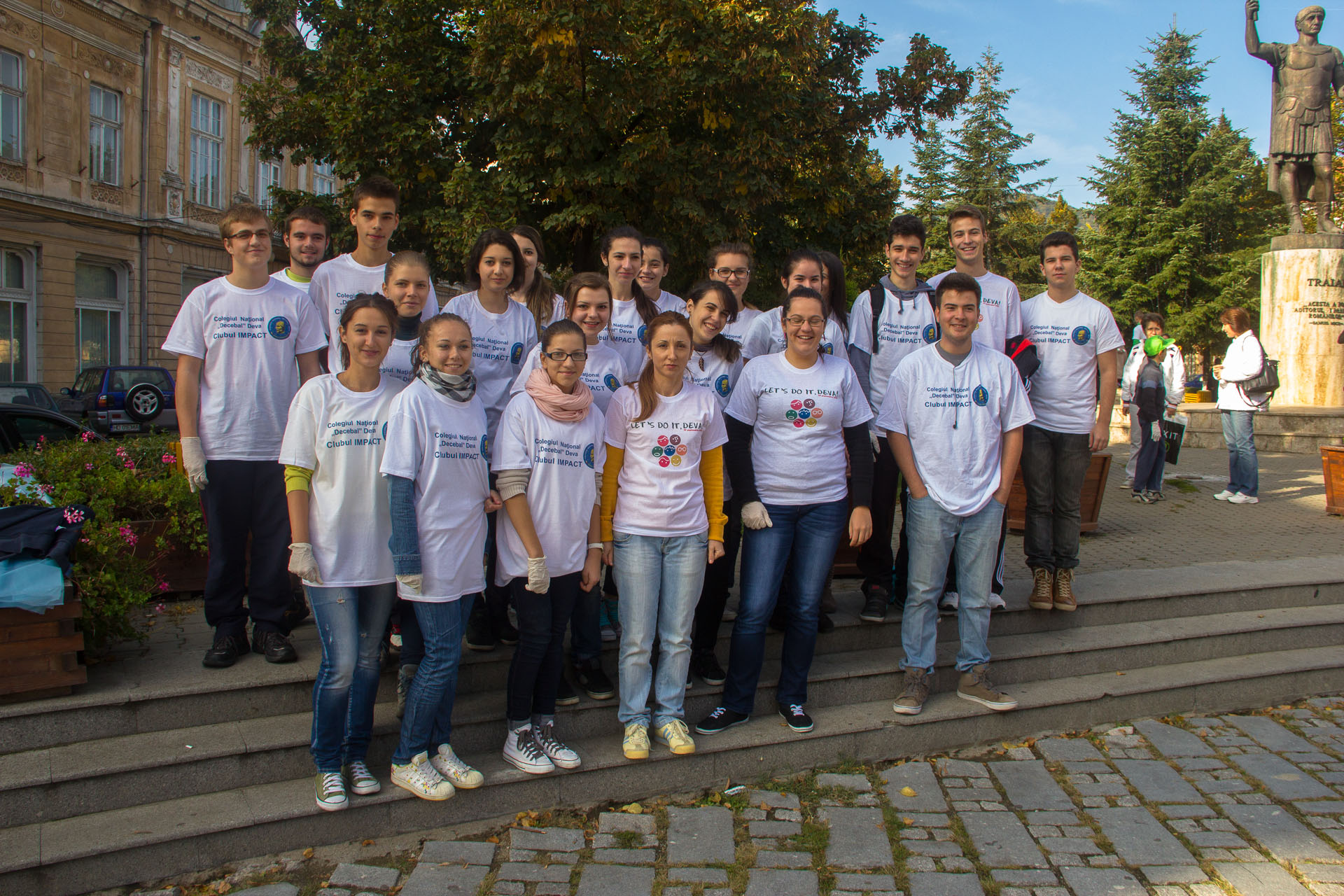 Peste 20 de elevi de la Colegiul Naţional "Deceba" Deva, reprezentanţi ai Clubului IMPACT coordonaţi de doamna profesoară Ana Popa, au participat sâmbătă 28 septembrie a.c., ca voluntari, la cea de-a patra ediţie a campaniei naţionale de ecologizare ,,Let’s do it România” care îşi propune ca obiectiv final curăţarea teritoriului României de deşeurile aruncate necorespunzător în arealele naturale.