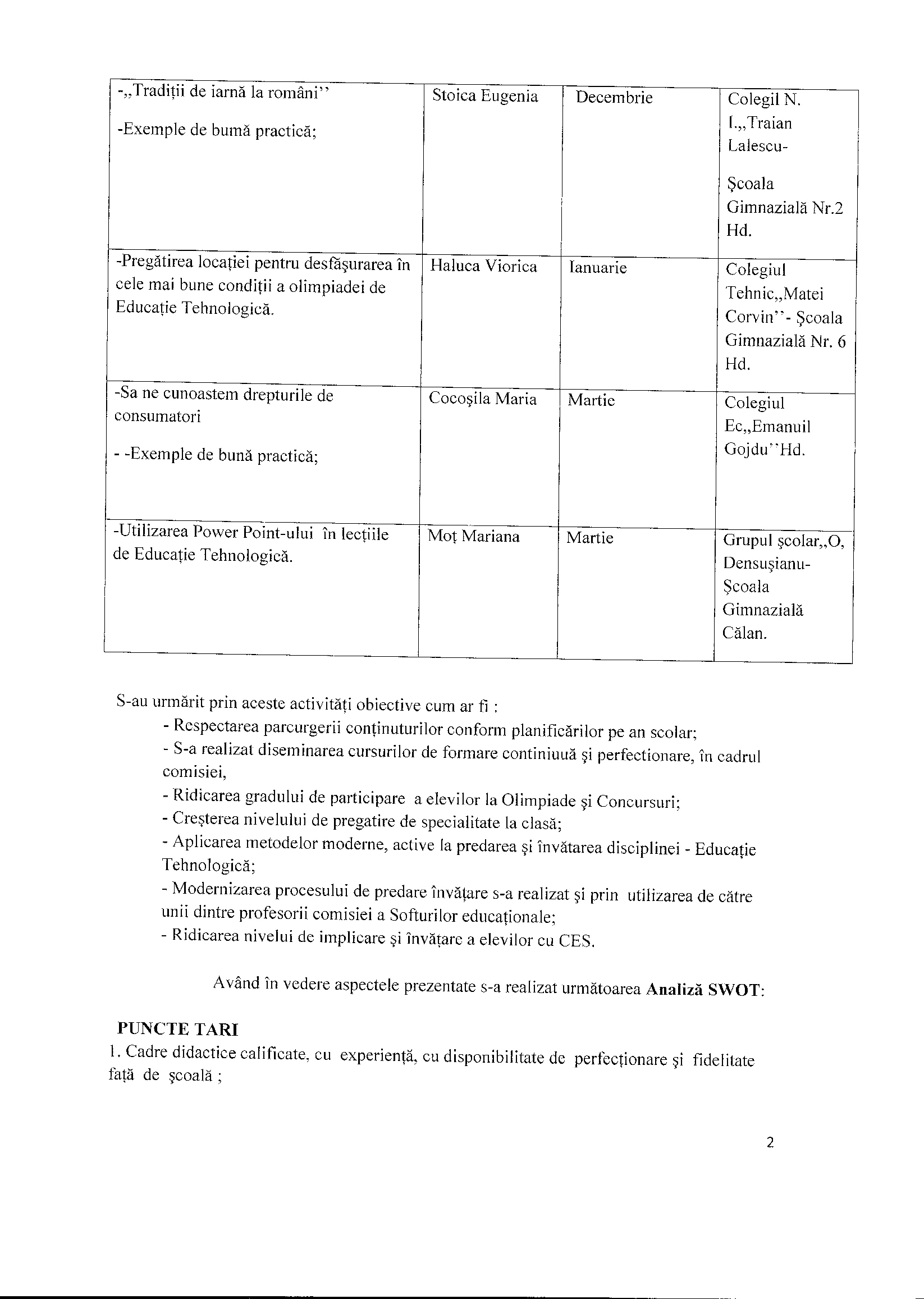 1. Raportul privind activitatea comisiei metodice a profesorilor de educatie tehnologică zona Hunedoara, Călan, Haţeg în luna martie 2013.