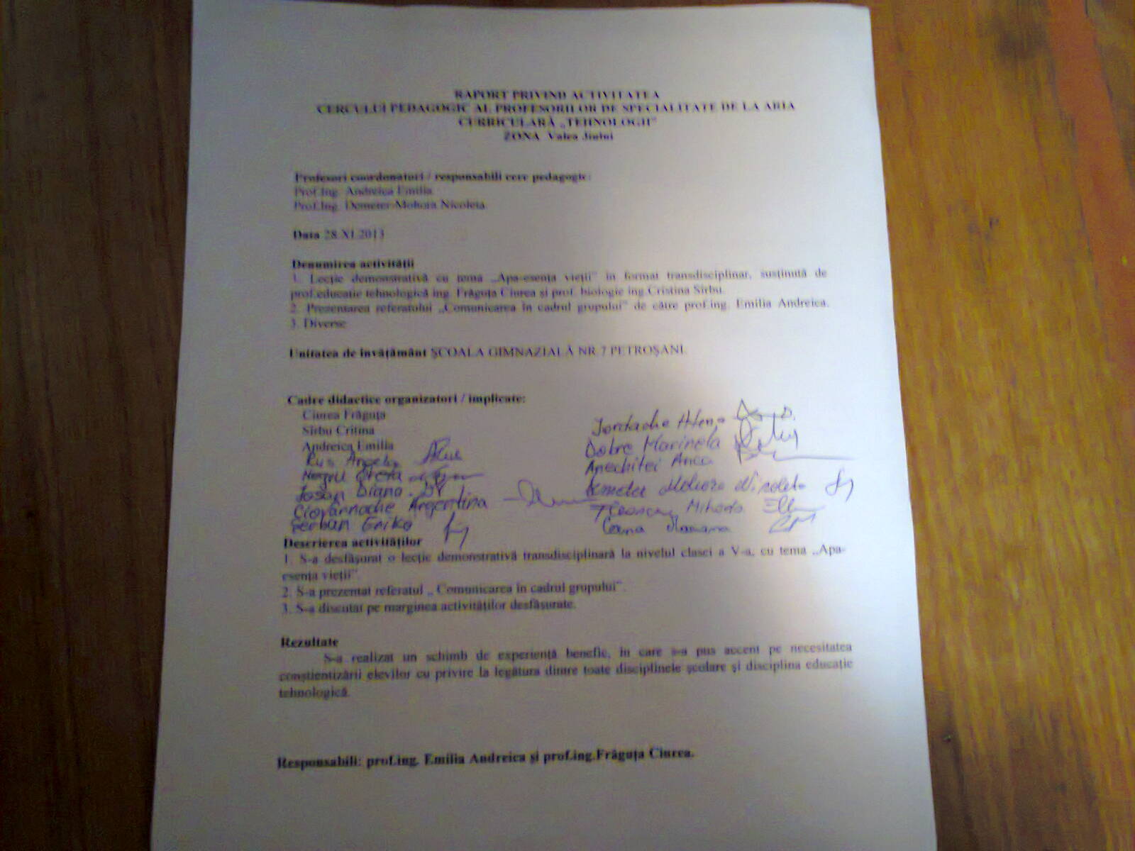 Vă prezentăm activitatea Cercului Pedagogic, zona VALEA JIULUI, din data de 28.11. 2013.