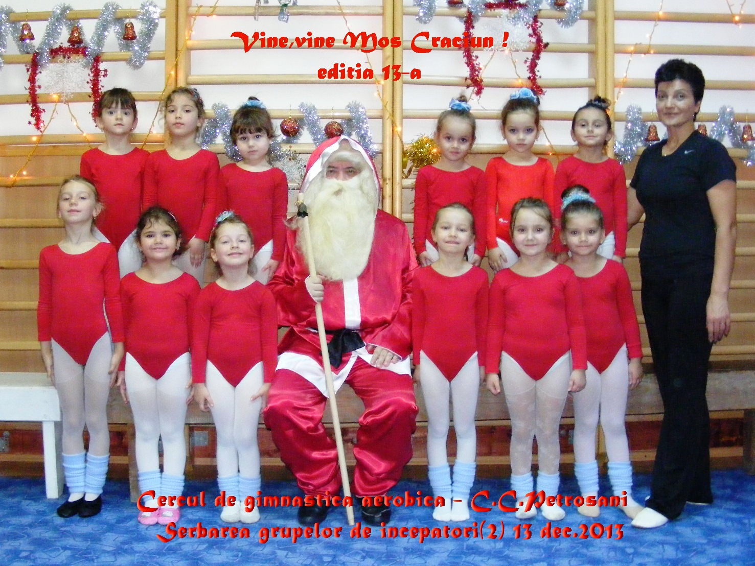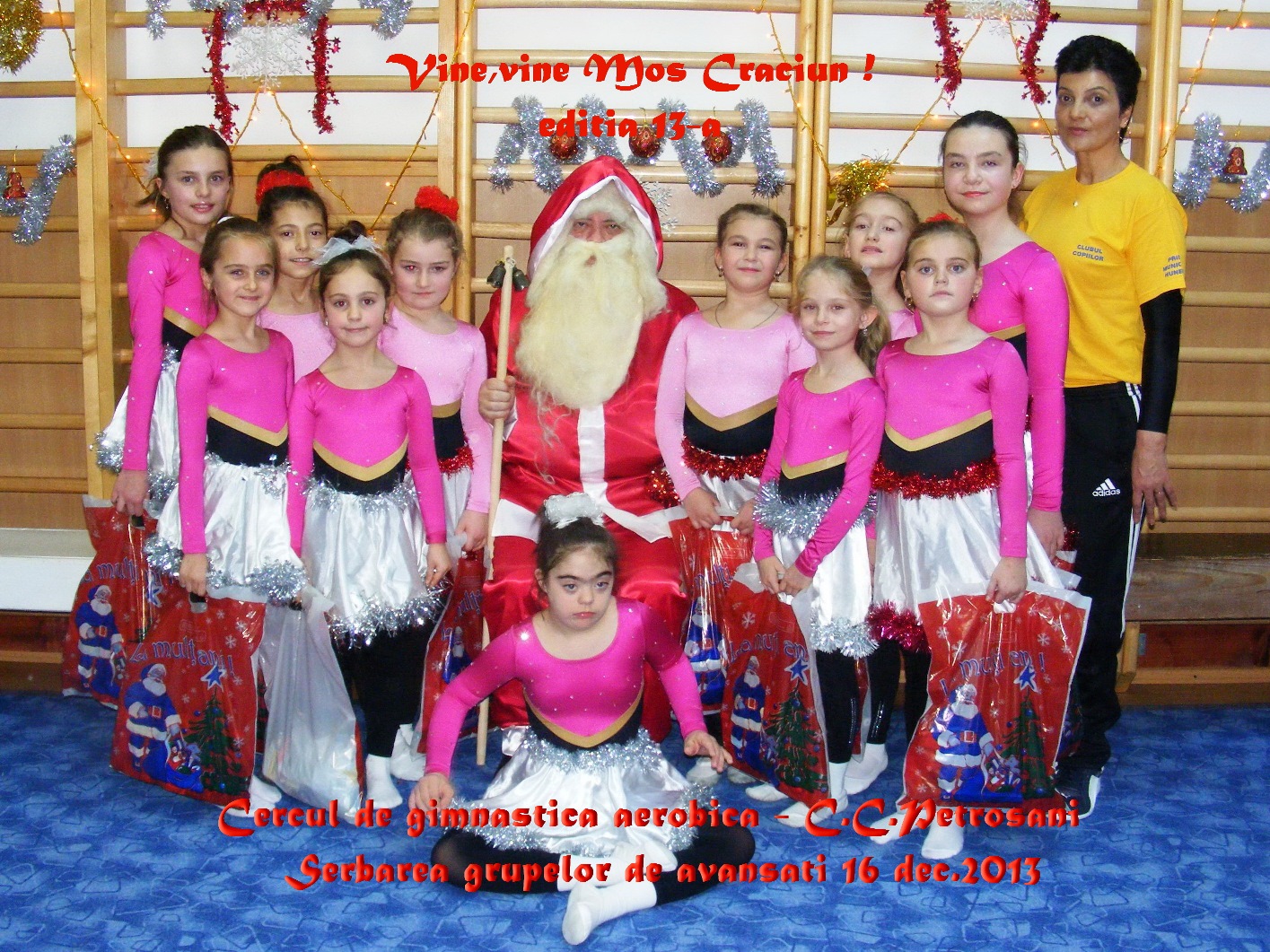 *A fost editia a XIII-a a serbarilor de Craciun devenite traditionale la cercul de gimnastica aerobica. Copiii l-au primit pe Mos Craciun cu un bogat program artistic si sportiv,in fata numerosilor parinti participanti la spectacole.