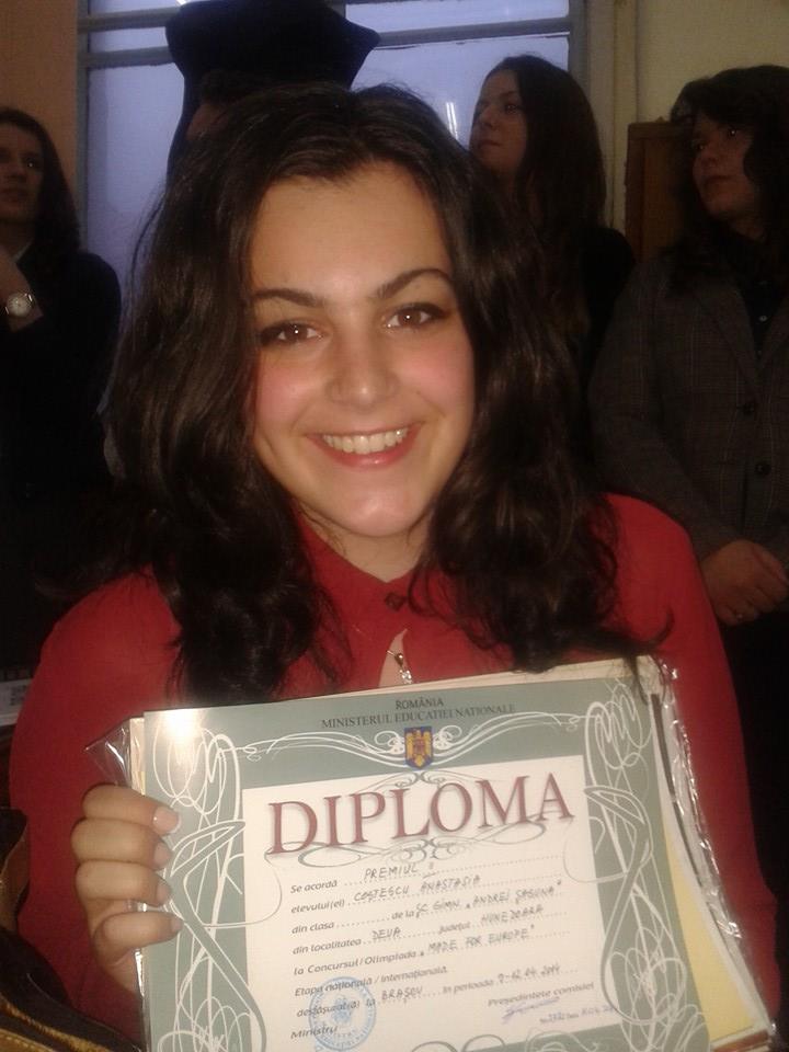 Şcoala Gimnazială „ANDREI ŞAGUNA” Deva, reprezentată de eleva ANASTASIA COSTESCU – cls- a VIII-a A şi coordonată de prof. Alina Maria Tarnu, a ocupat locul al II-lea naţional la categoria „proiecte multilaterale” cu portofoliul „3R”.