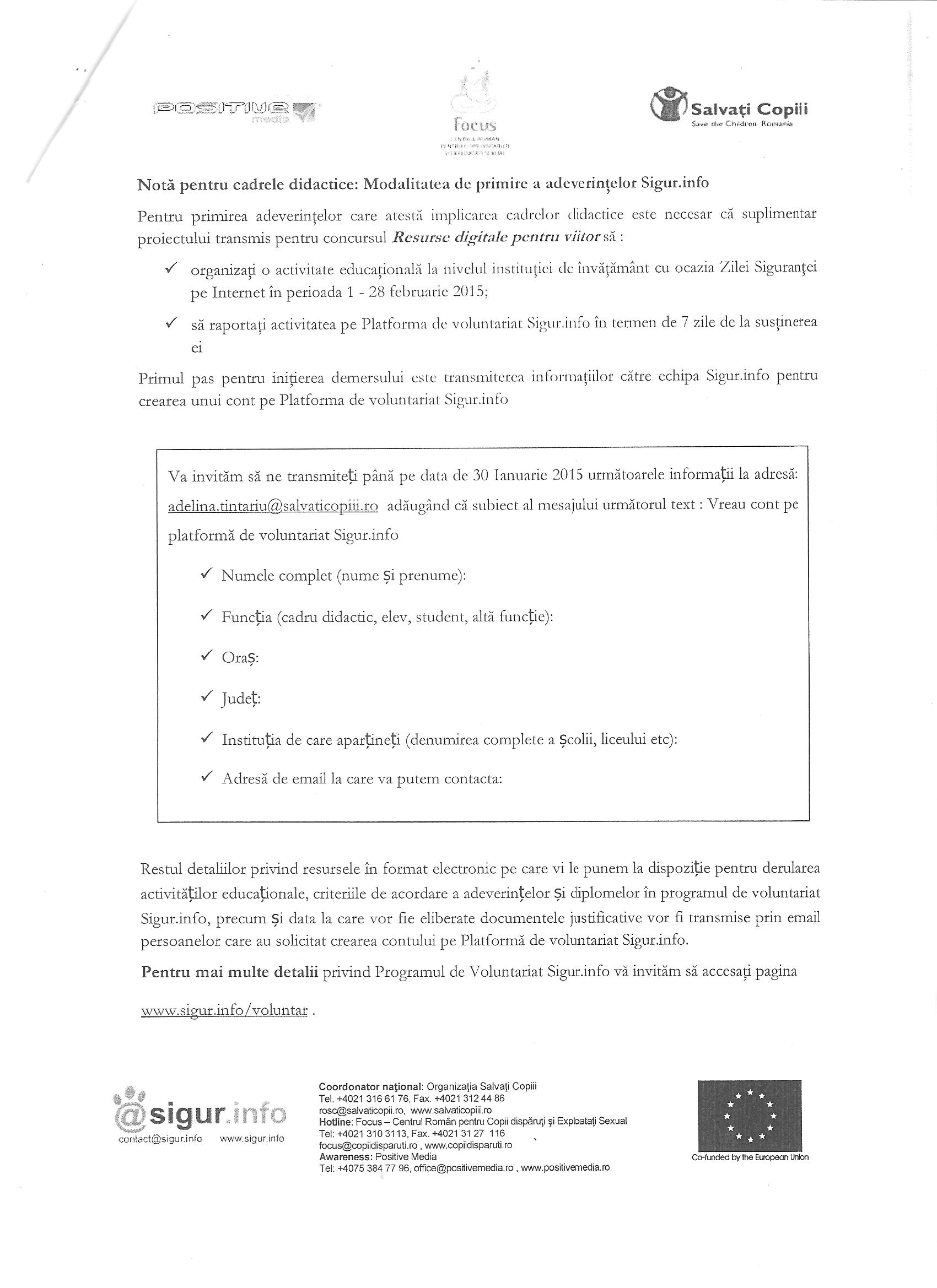 În atașament aveți Notă pentru cadrele didactice și modalitatea de primire a adeverințelor Sigur.info.