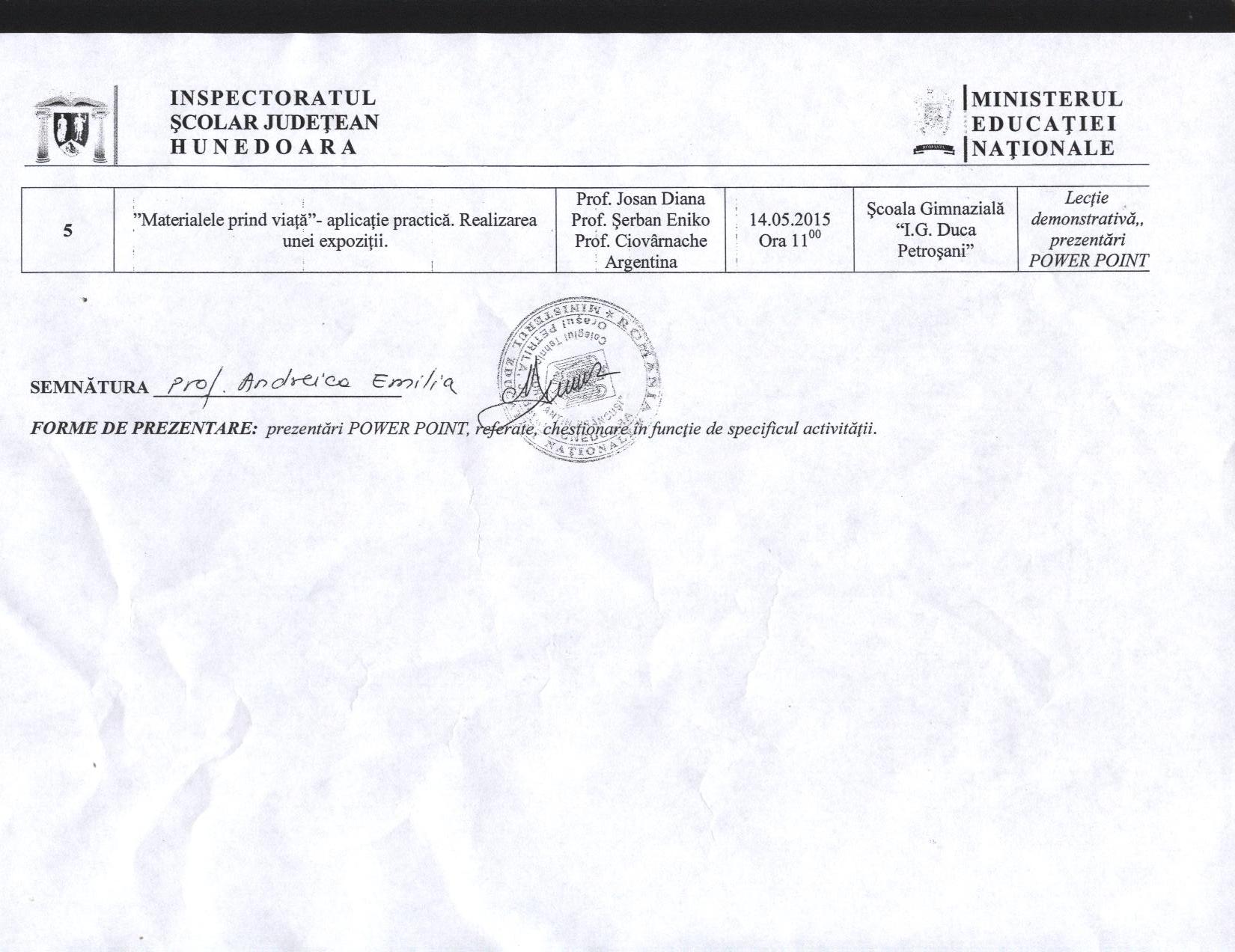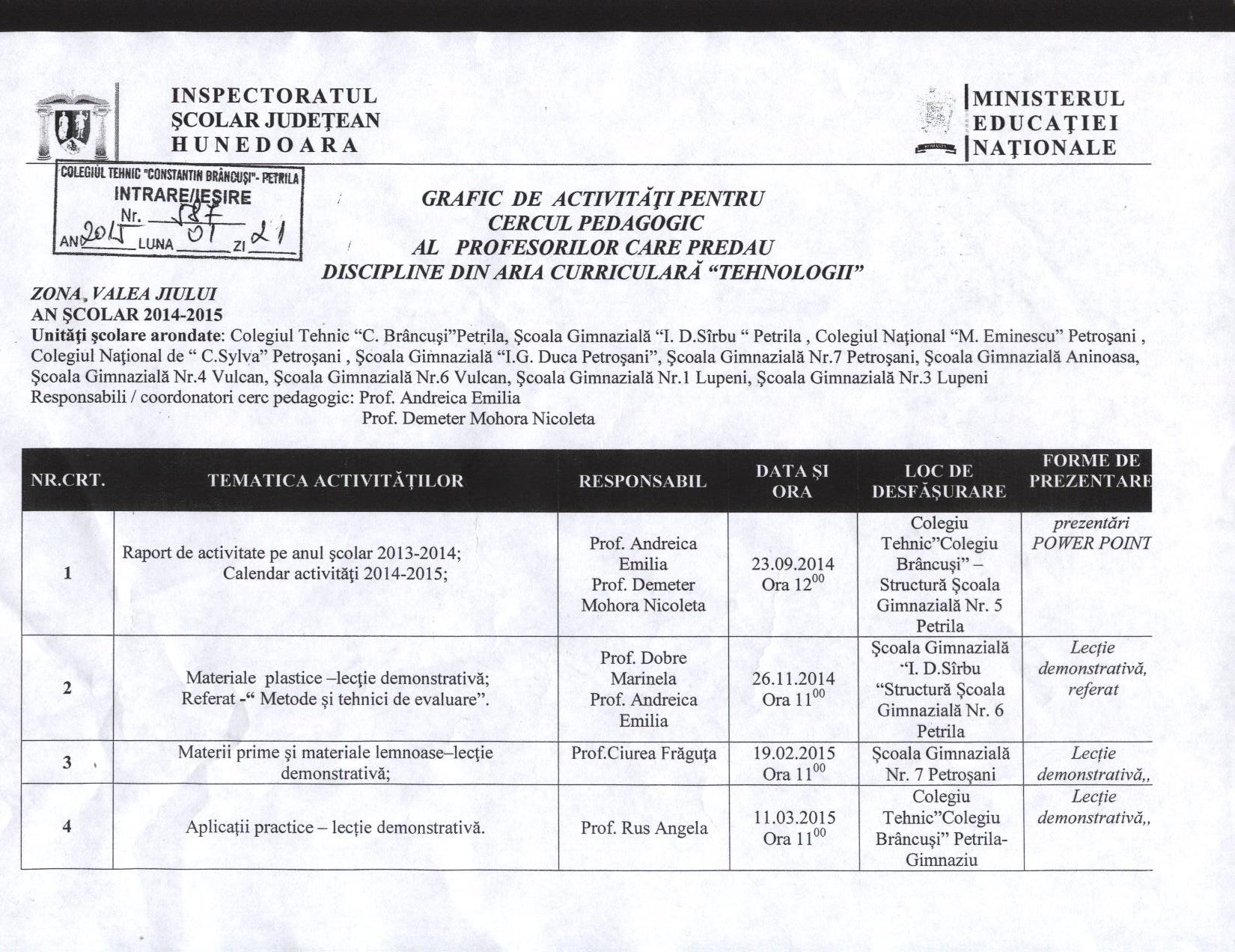 GRAFIC ACTIVITATI ED. TEHNOLOGICA AN SCOLAR 2014-2015