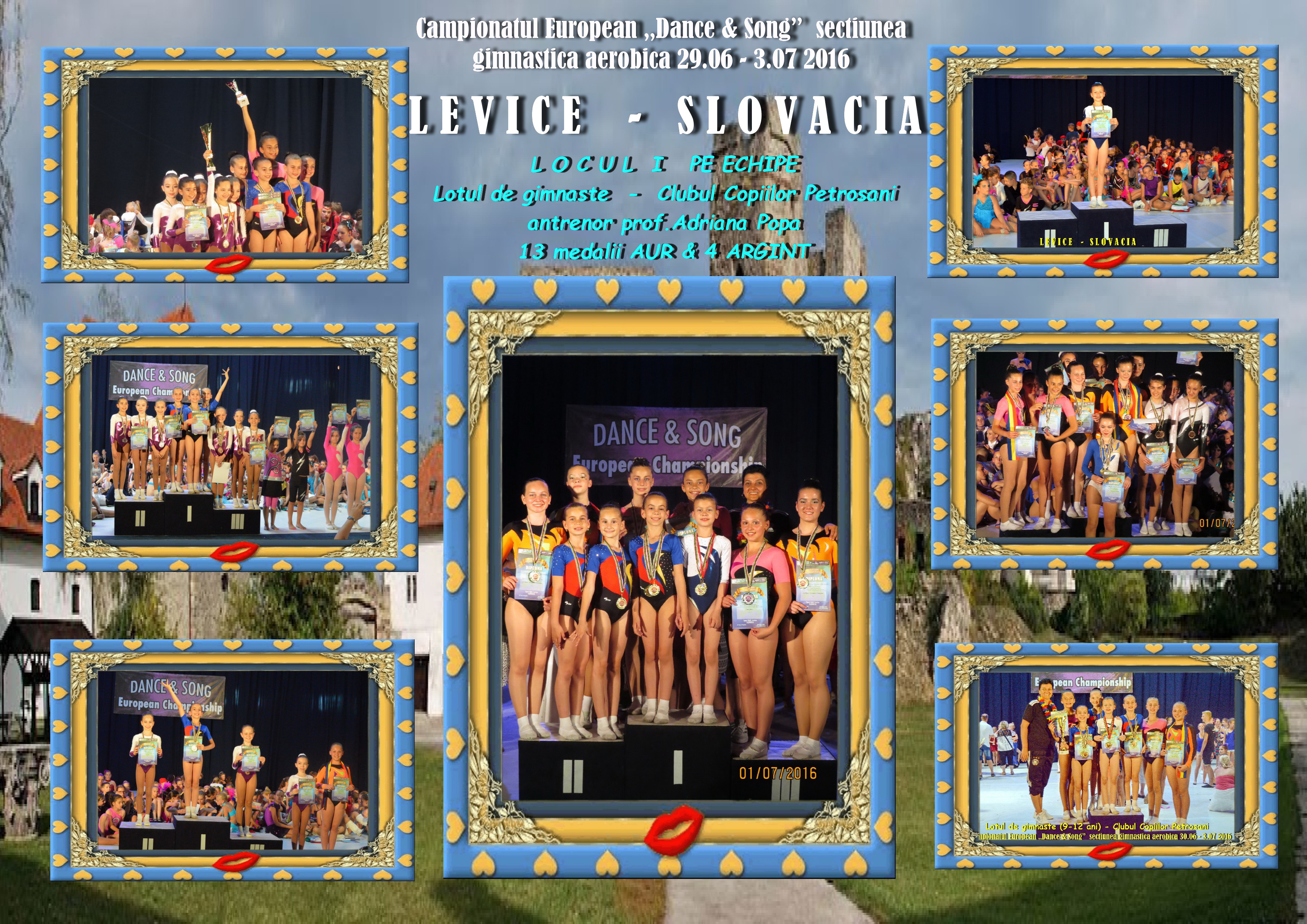 * Evenimentul s-a desfasurat la Sportová hala din Levice - Slovacia, lotul de gimnastica aerobica de la Clubul Copiilor Petrosani, coordonat de antrenor profesor Adriana Popa a concurat la categoria sport-dance, sectiunea gimnastica aerobica castigand 13 medalii de AUR si 4 de ARGINT :D