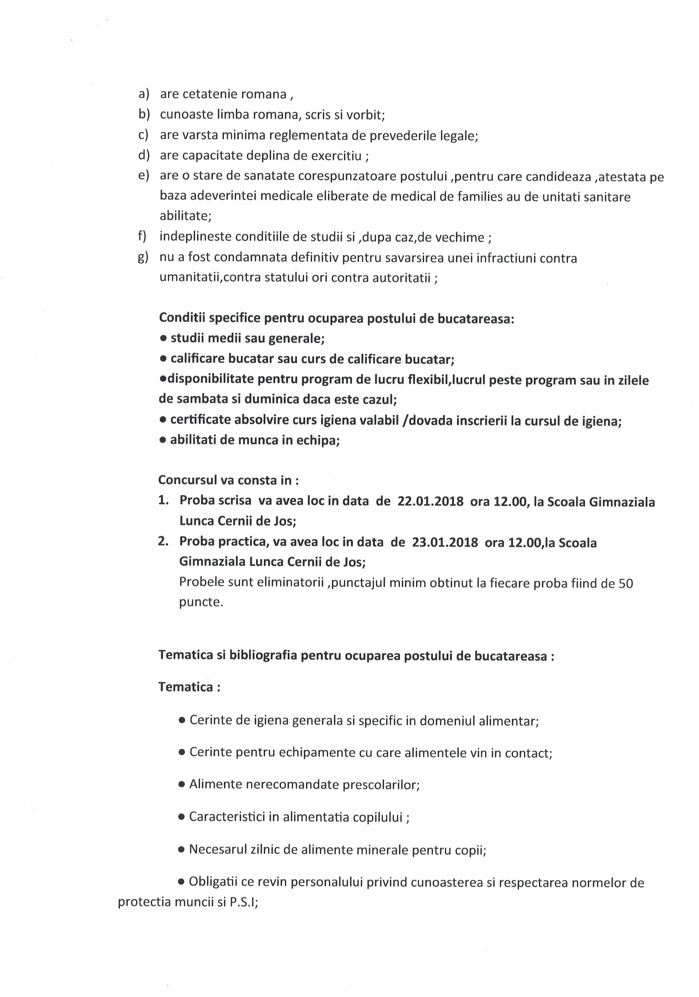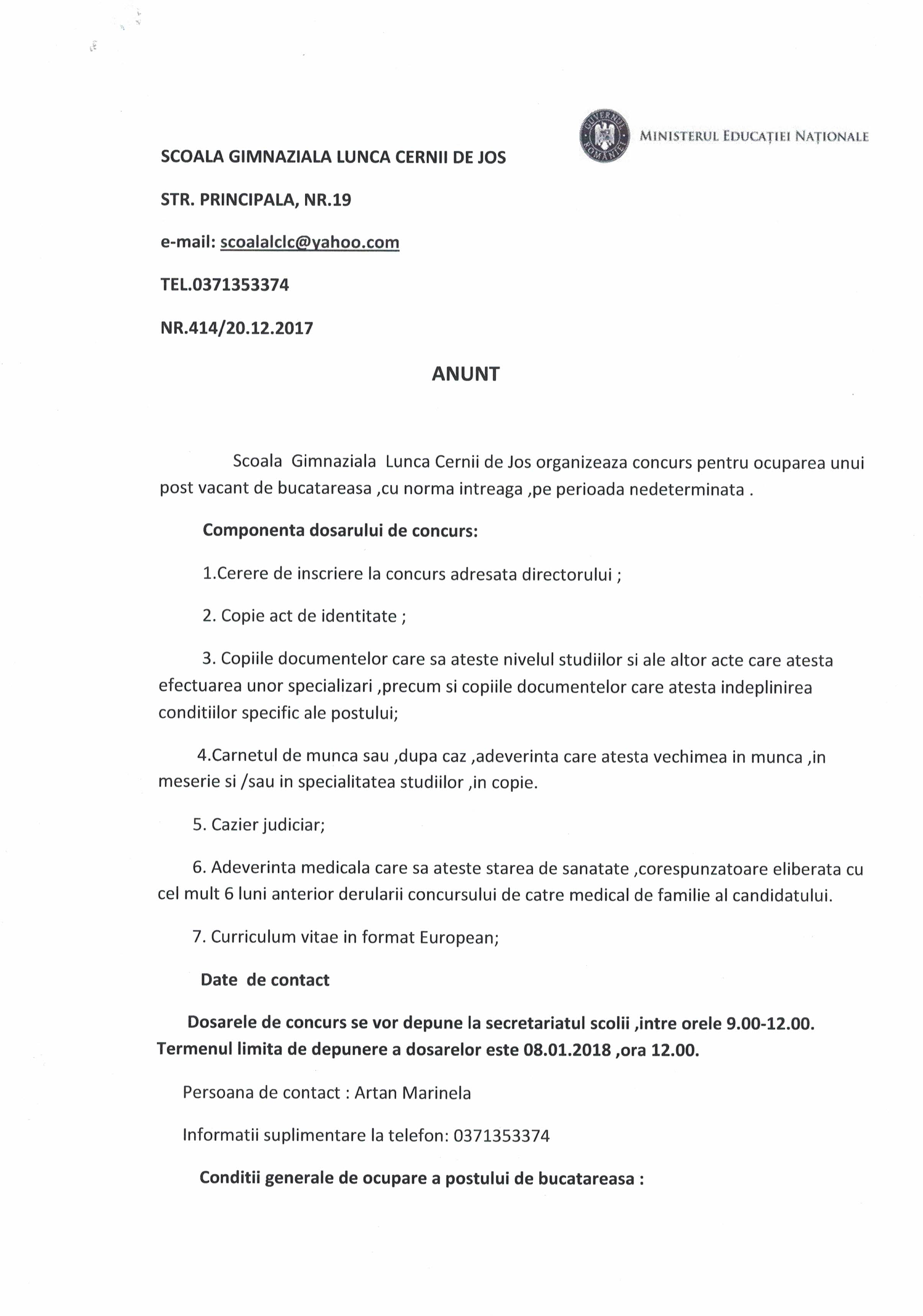 anunt concurs post bucatar