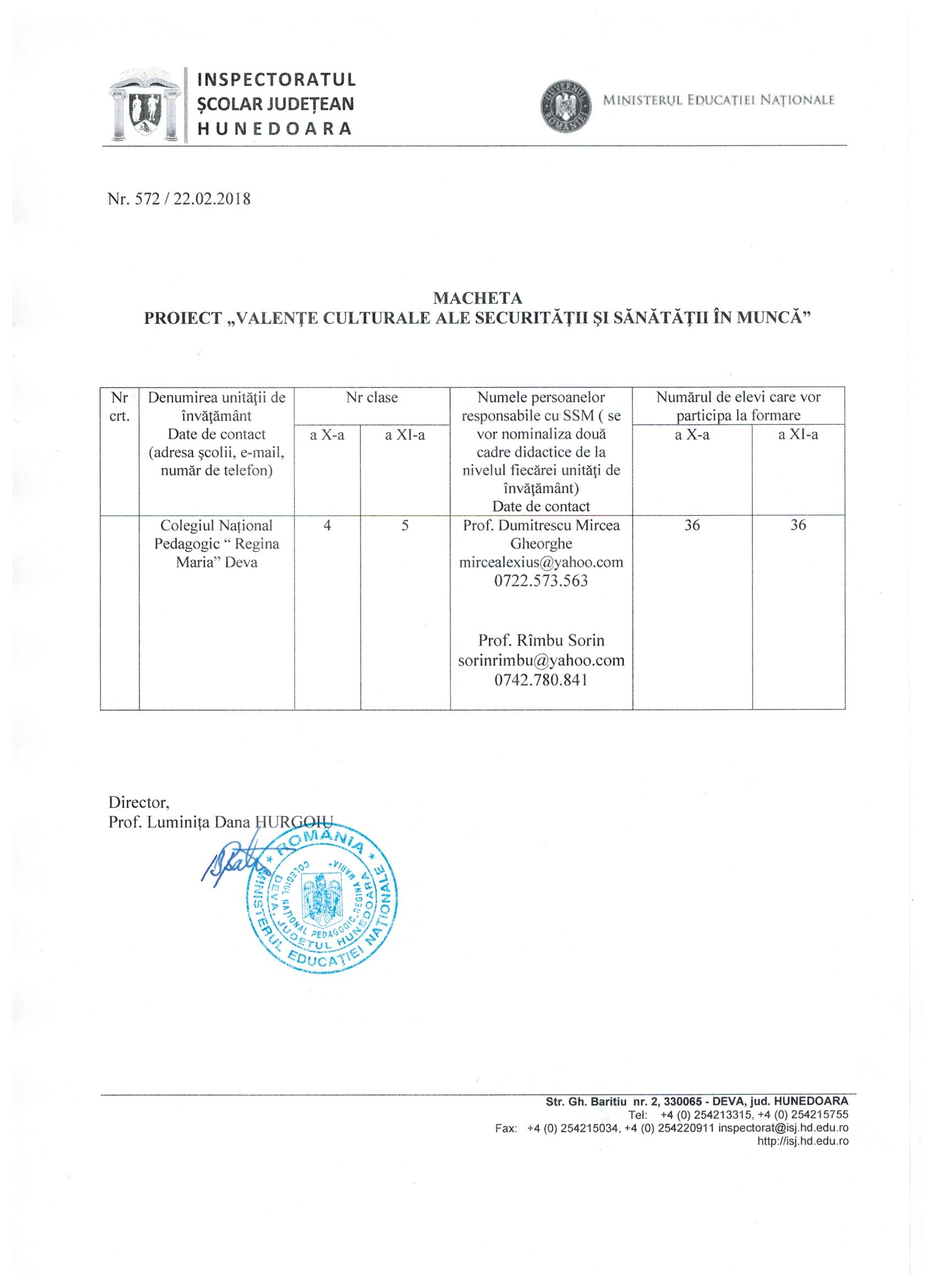 Re: PROIECT VALENTE CULTURALE_ 2018