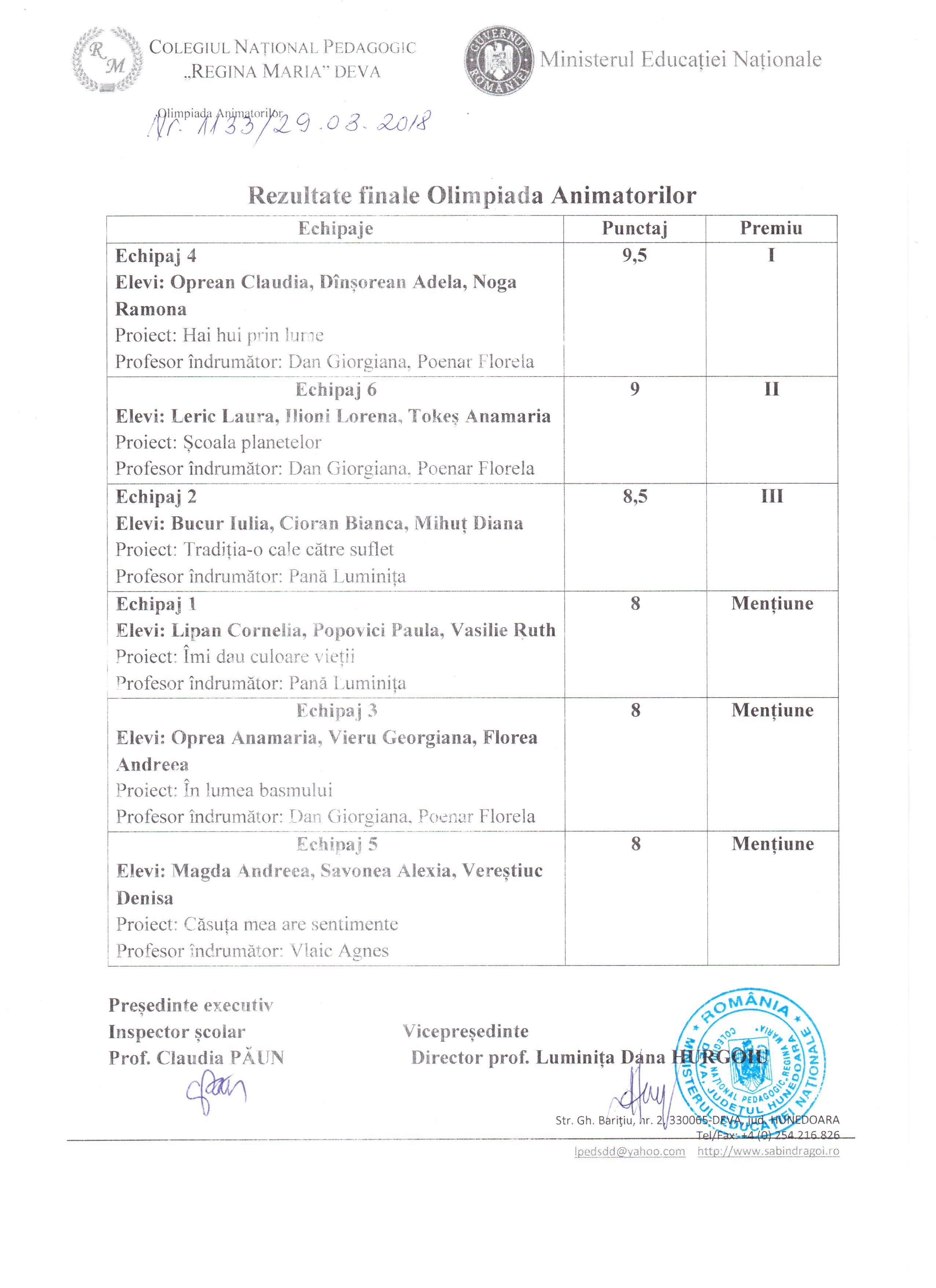 În documentul atașat găsiți rezultatele finale obținute la etapa județeană de la Olimpiada Animatorilor-licee pedagogice.