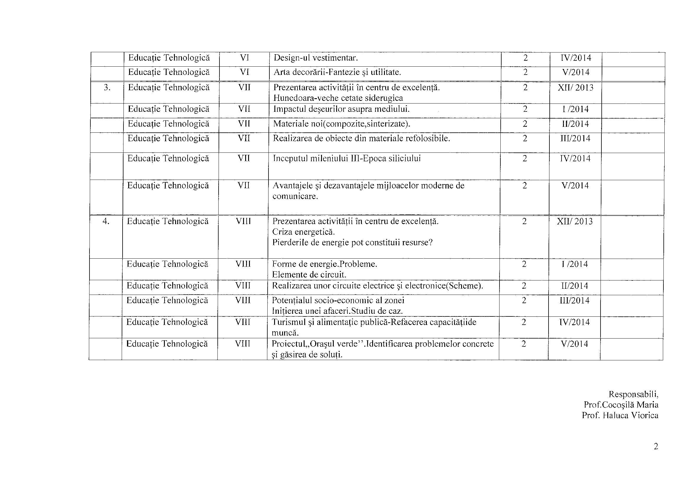 GRAFICUL DE ACTIVITĂŢI - Cercul pedagogic al profesorilor de Educație Tehnologică, an școlar 2013-1014, zona Hațeg.