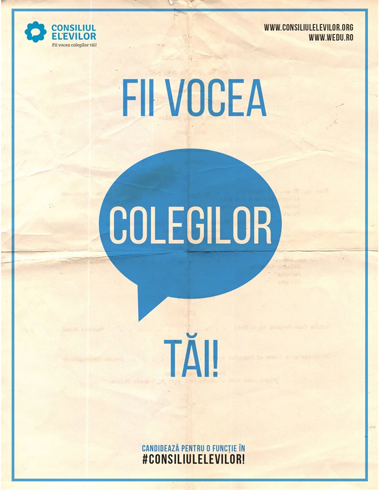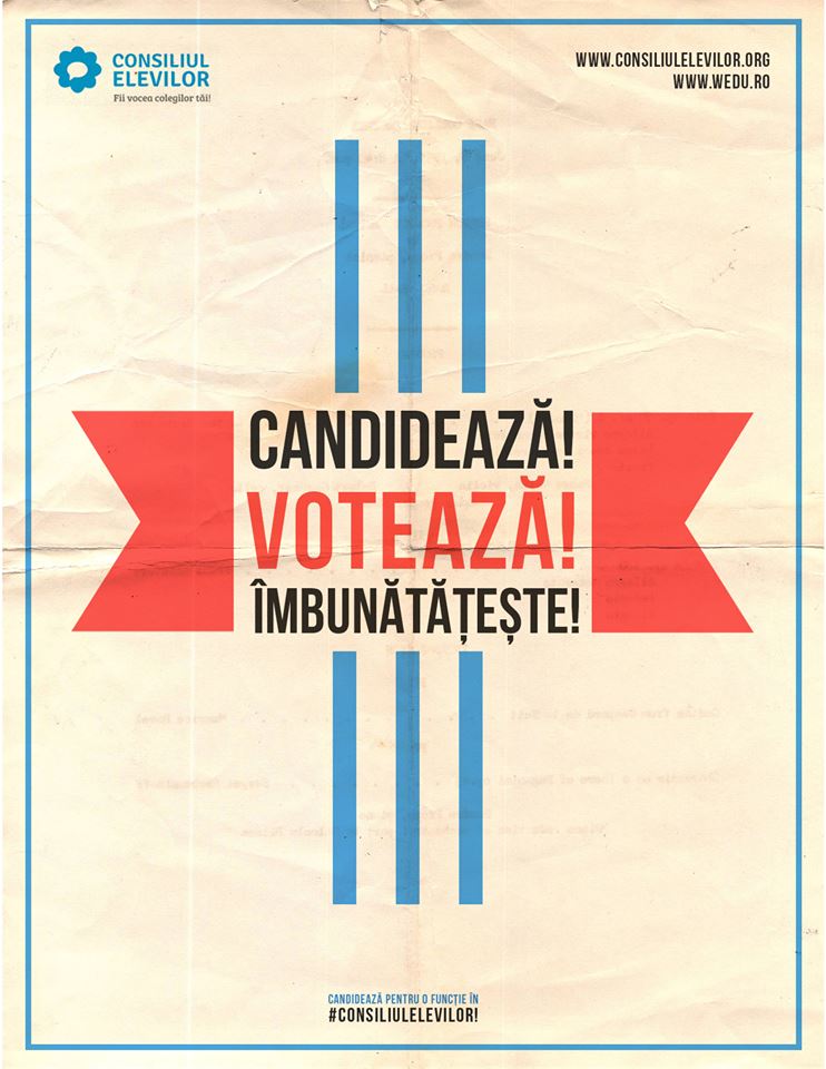 Totodată vă rugăm să diseminaţi informaţia în unitatea de învăţământ şi să sprijiniţi Consiliul Judeţean/Municipal al Elevilor şi Consiliile Şcolare ale Elevilor pentru asigurarea unor alegeri corecte şi democrate, atât din punct de vedere financiar (printare de buletine de vot şi asigurarea unei urne), cât şi logistic.