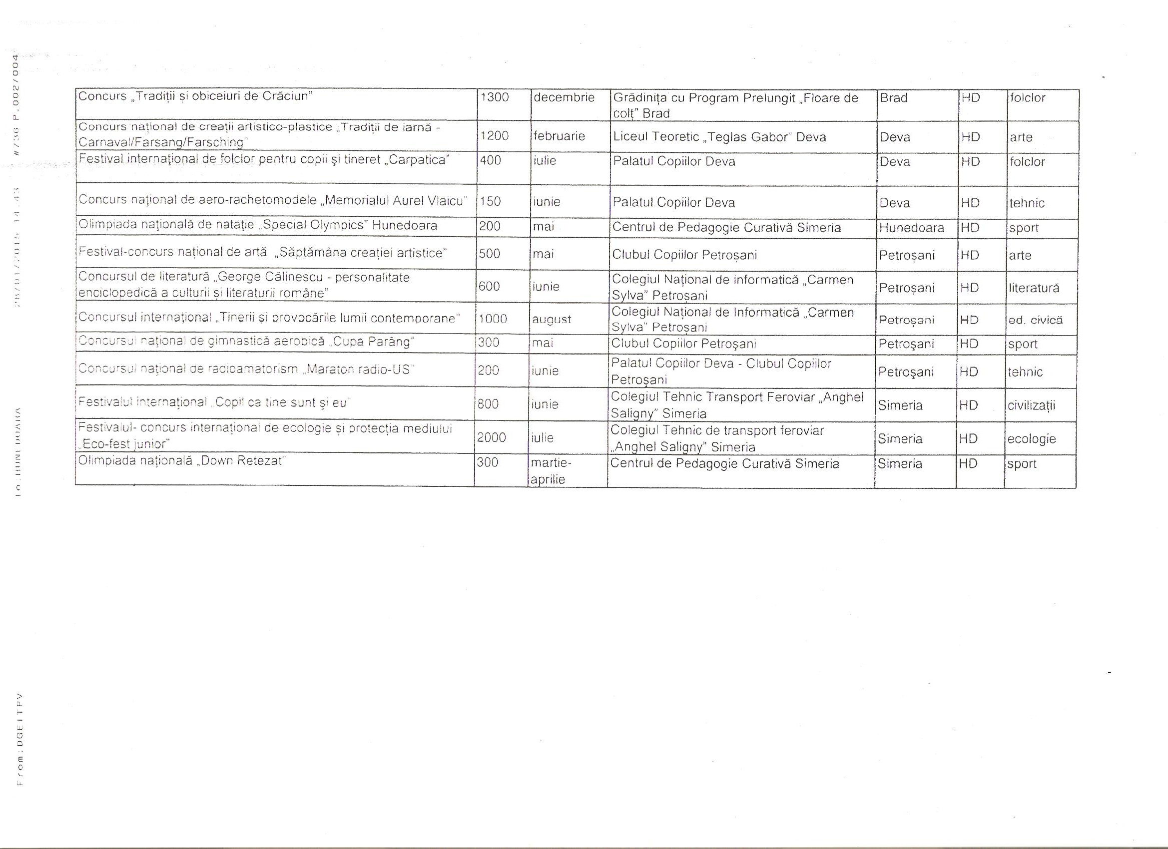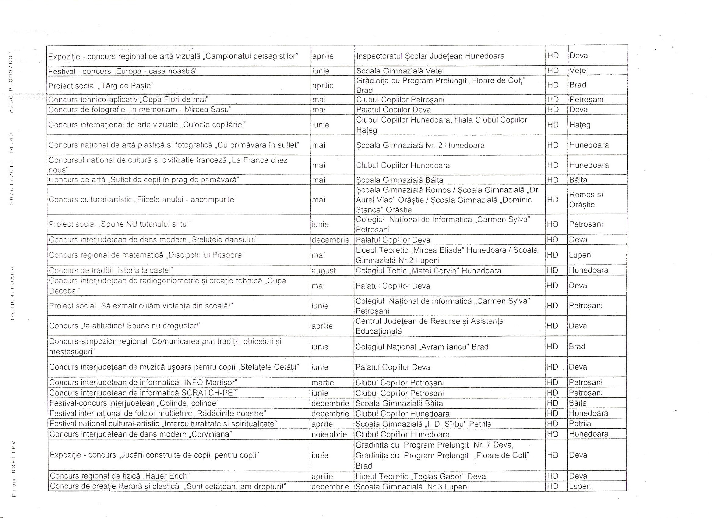 Vă comunic lista proiectelor județului Hunedoara selectate a face parte din Calendarul Activităților Educative Naționale (CAEN) 2015 al Ministerului Educației și Cercetării Științifice, respectiv lista proiectelor care vor face parte din Calendarul Activităților Regionale și Interjudețene (CAERI) 2015.