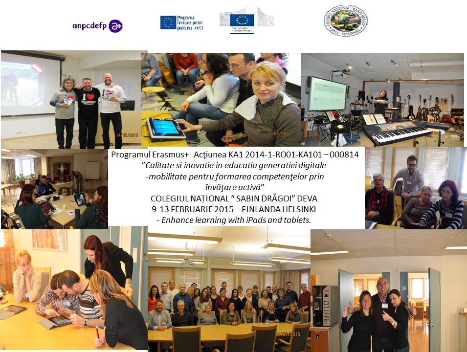 În scopul de a crea oportunități de predare - învățare - evaluare în concordanță cu cerințele educaționale europene ale epocii digitale, opt cadre didactice de la Colegiul Național “Sabin Drăgoi” Deva au participat la cursul de formare – “Enhance learning with iPads and tablets” – Finlanda - Helsinki organizat de către The Finnish Association on Intellectual and Developmental Disabilities Helsinki – Finlanda și Atempo din Graz Austria.