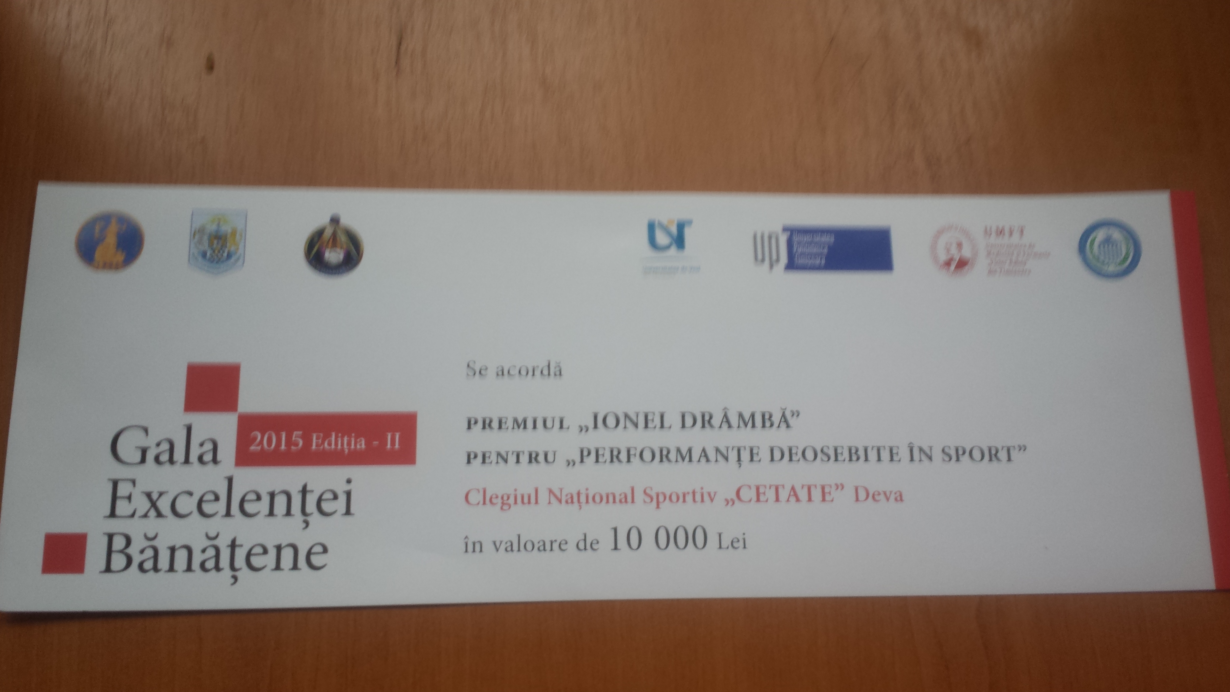 Premiul „Ionel Drâmbă” pentru „Performanţe Deosebite în Sport” a fost acordat Colegiului Naţional Sportiv „Cetate” Deva. Pe lângă diplomele oferite, unitatea a primit şi un premiu în valoare de 10.000 lei.