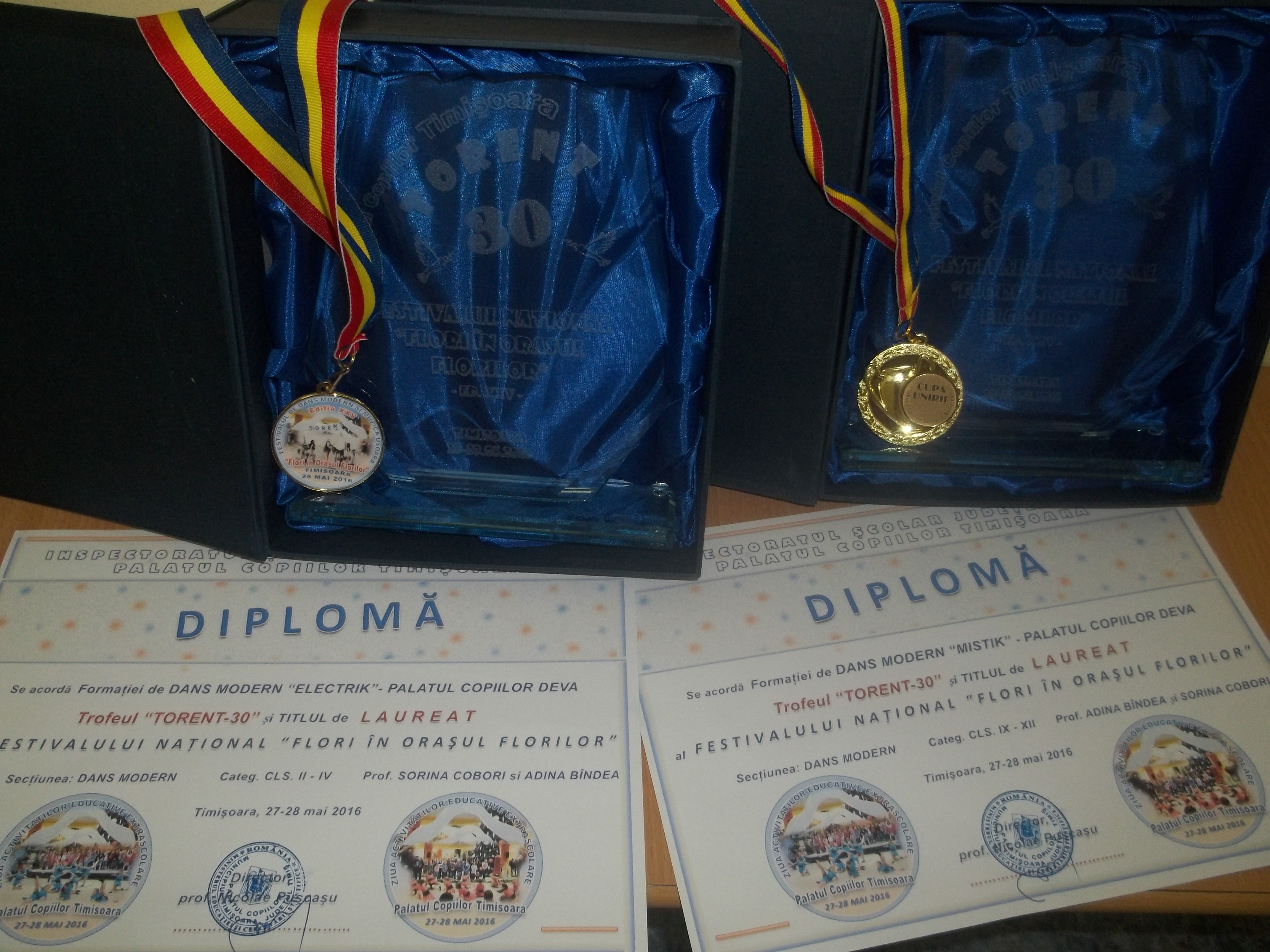În perioada 27-28 mai 2016, s-a desfăşurat la Timişoara Festivalul Naţional " Flori în oraşul florilor" organizat de Palatul Copiilor Timişoara. Formaţia de Dans Modern " MISTIK " a Palatului Copiilor Deva a obţinut trofeul " TORENT 30 " şi titlul de LAUREAT.