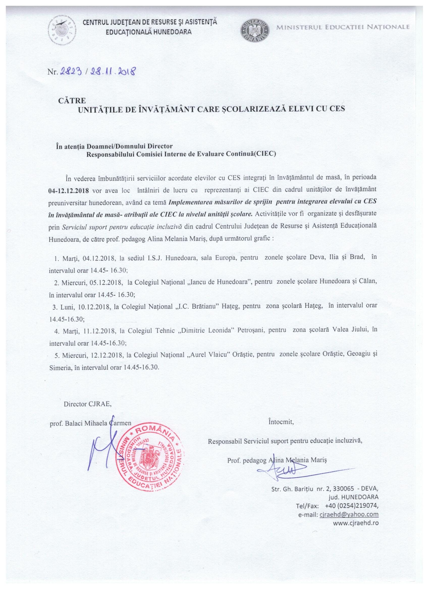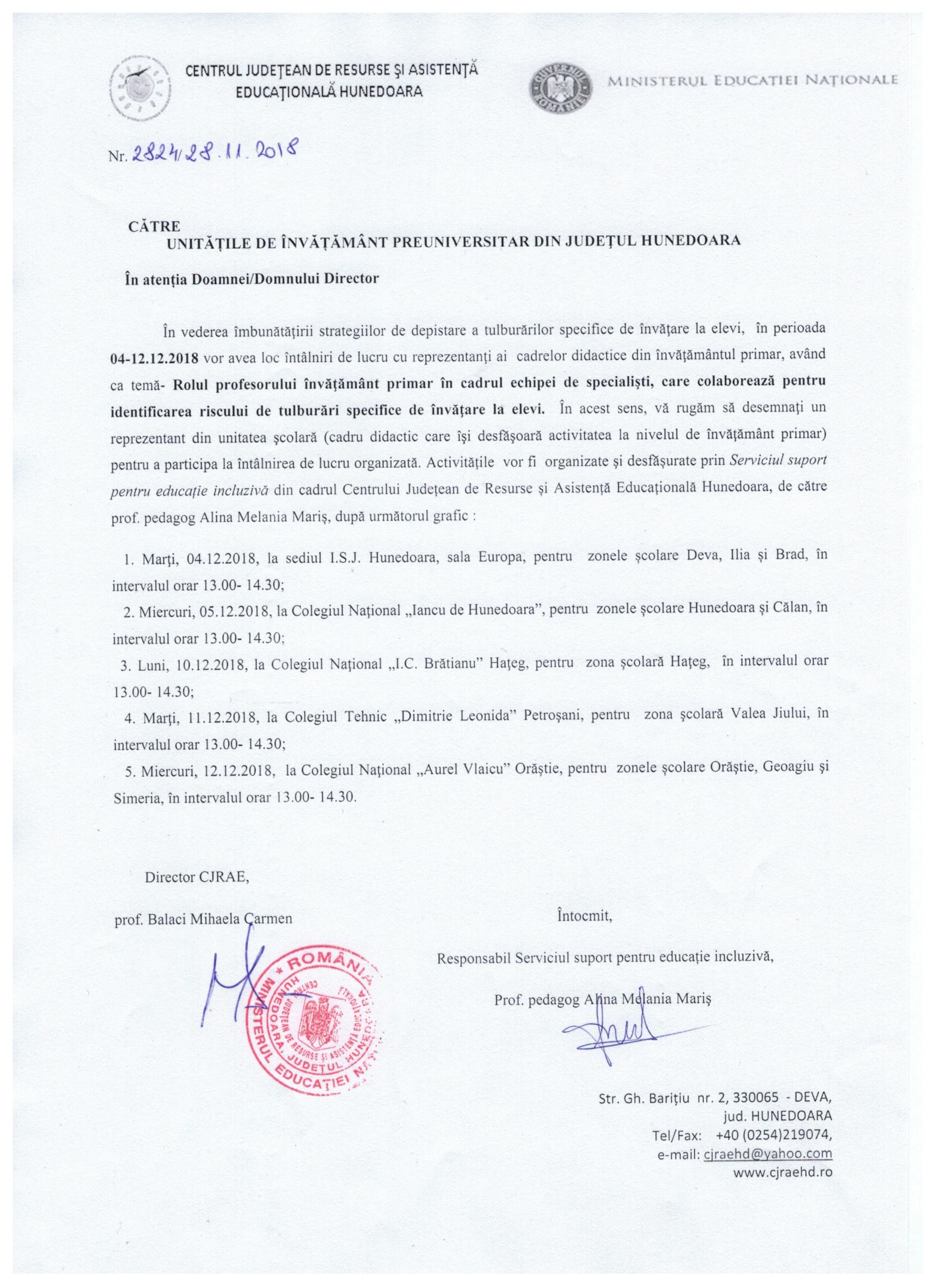 CJRAE Hunedoara –Serviciul suport pentru educaţie incluzivă organizează întâlniri de lucru cu responsabilii Comisiilor Interne de Evaluare Continuă (CIEC) și cu profesorii învățământ primar.