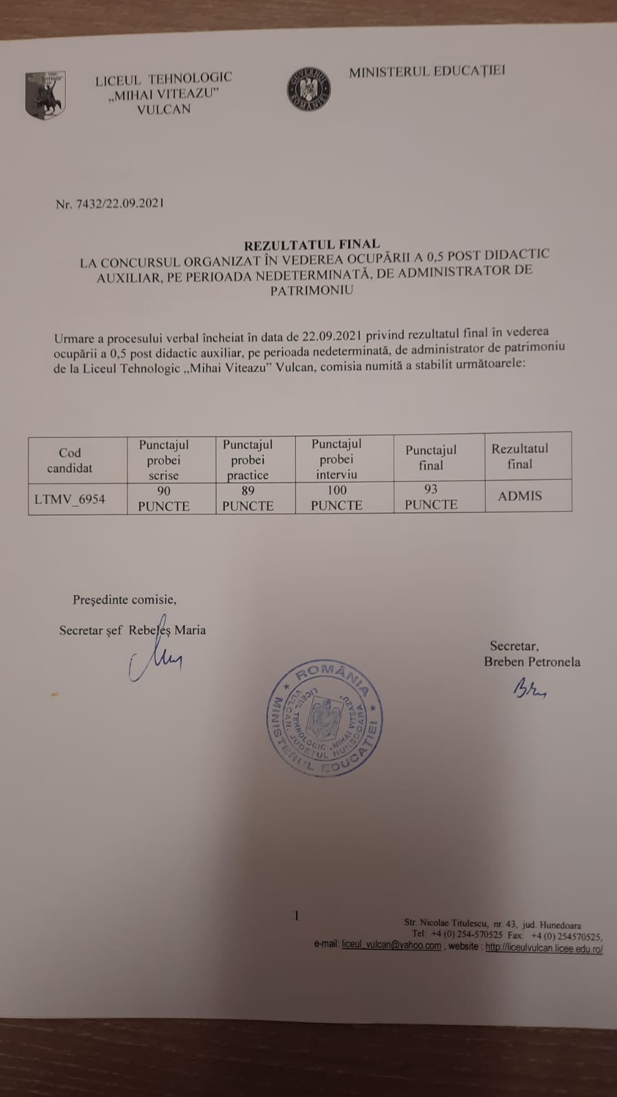 Re: Anunț post vacant administrator de patrimoniu - 0,5 norma.