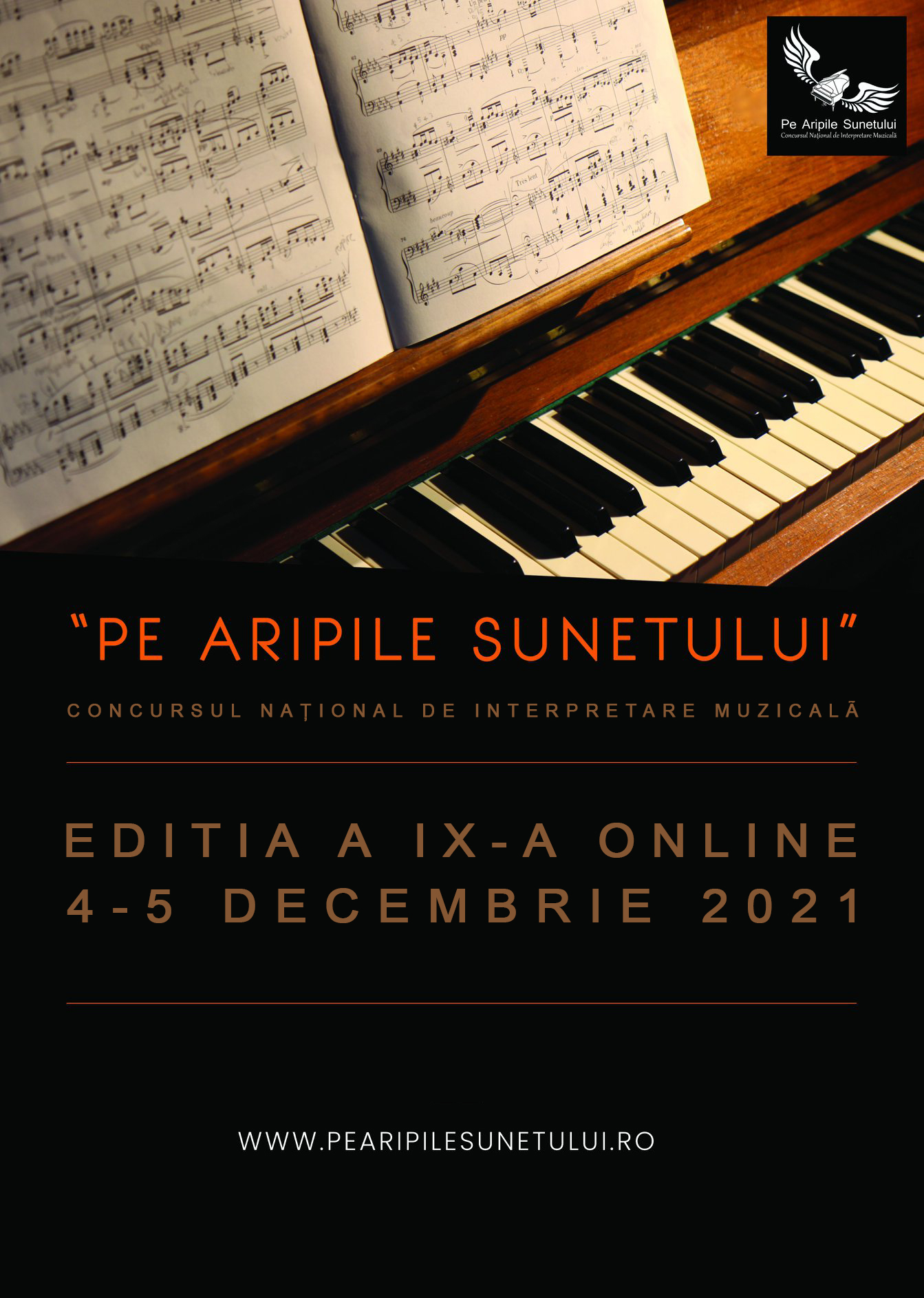 Concursul National de Interpretare Muzicala " Pe Aripile Sunetului", va invita in perioada 4-5 Decembrie 2021, incepand cu ora 10:00, la cea de-a 9-a editie a concursului, ce se va desfasura ONLINE.