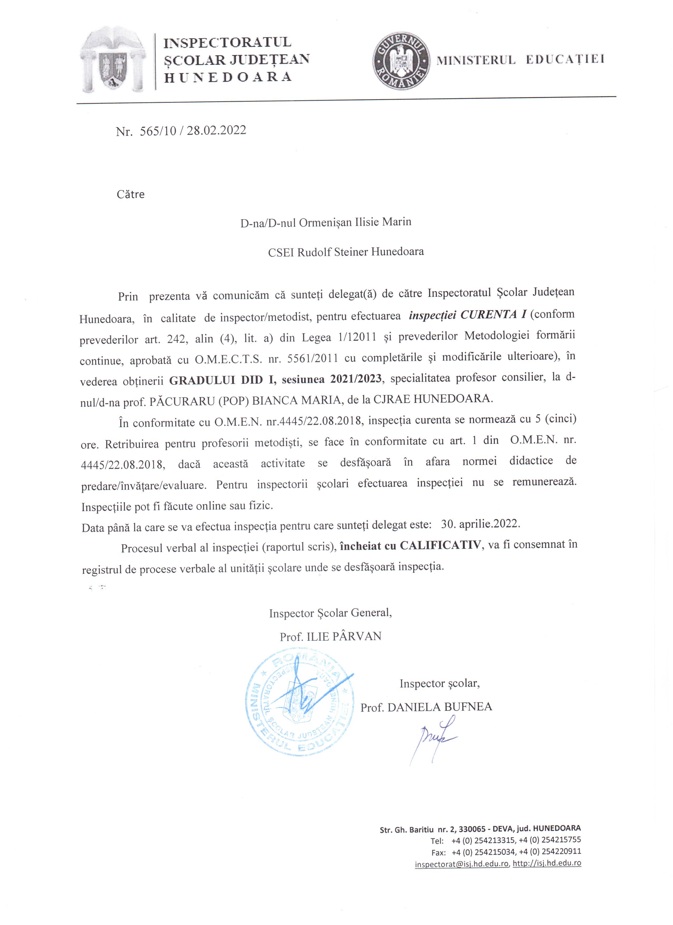 - ↳ Curriculum si inspectie scolara