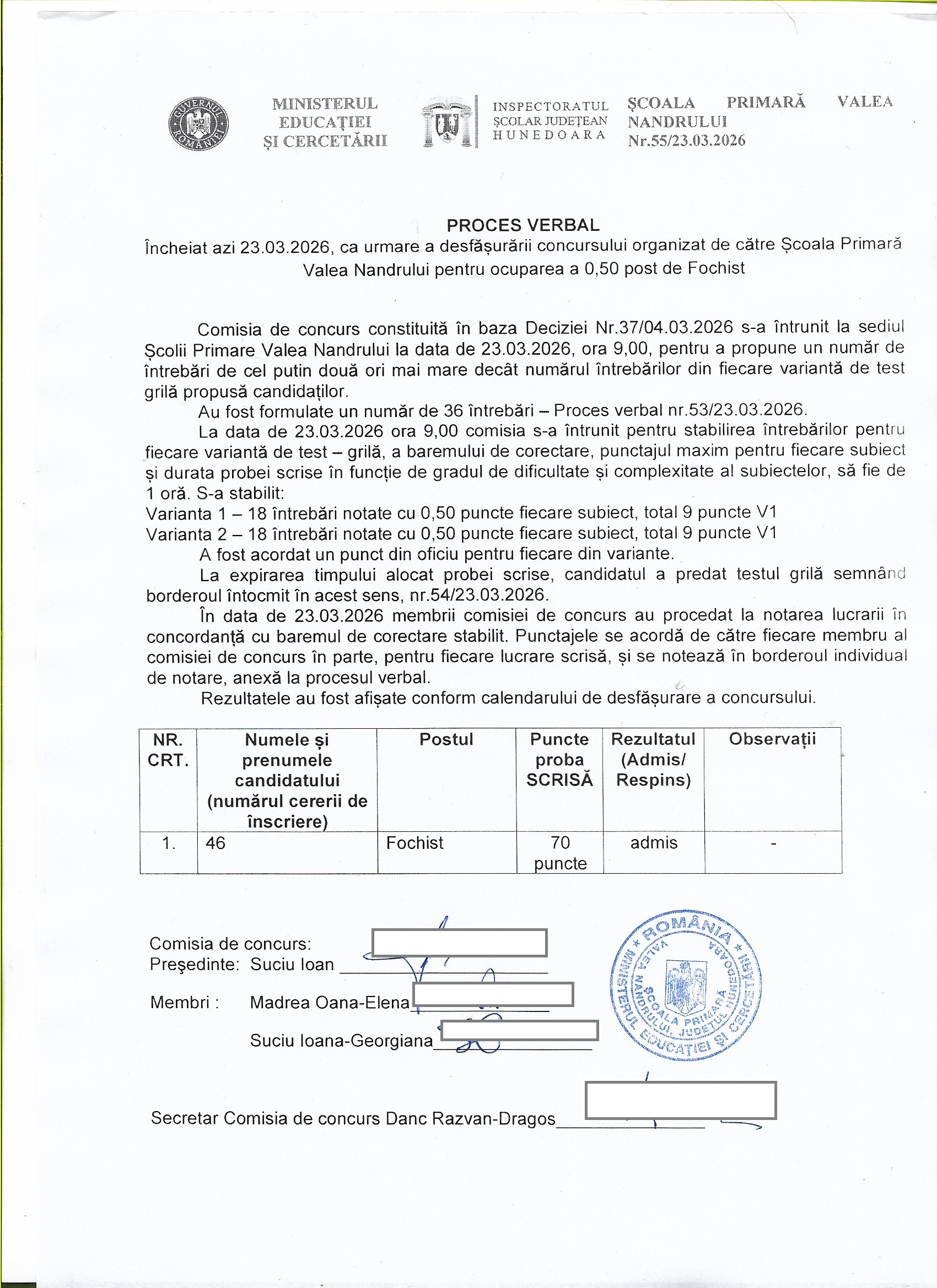 Re: ANUNȚ CONCURS nedidactic FOCHIST