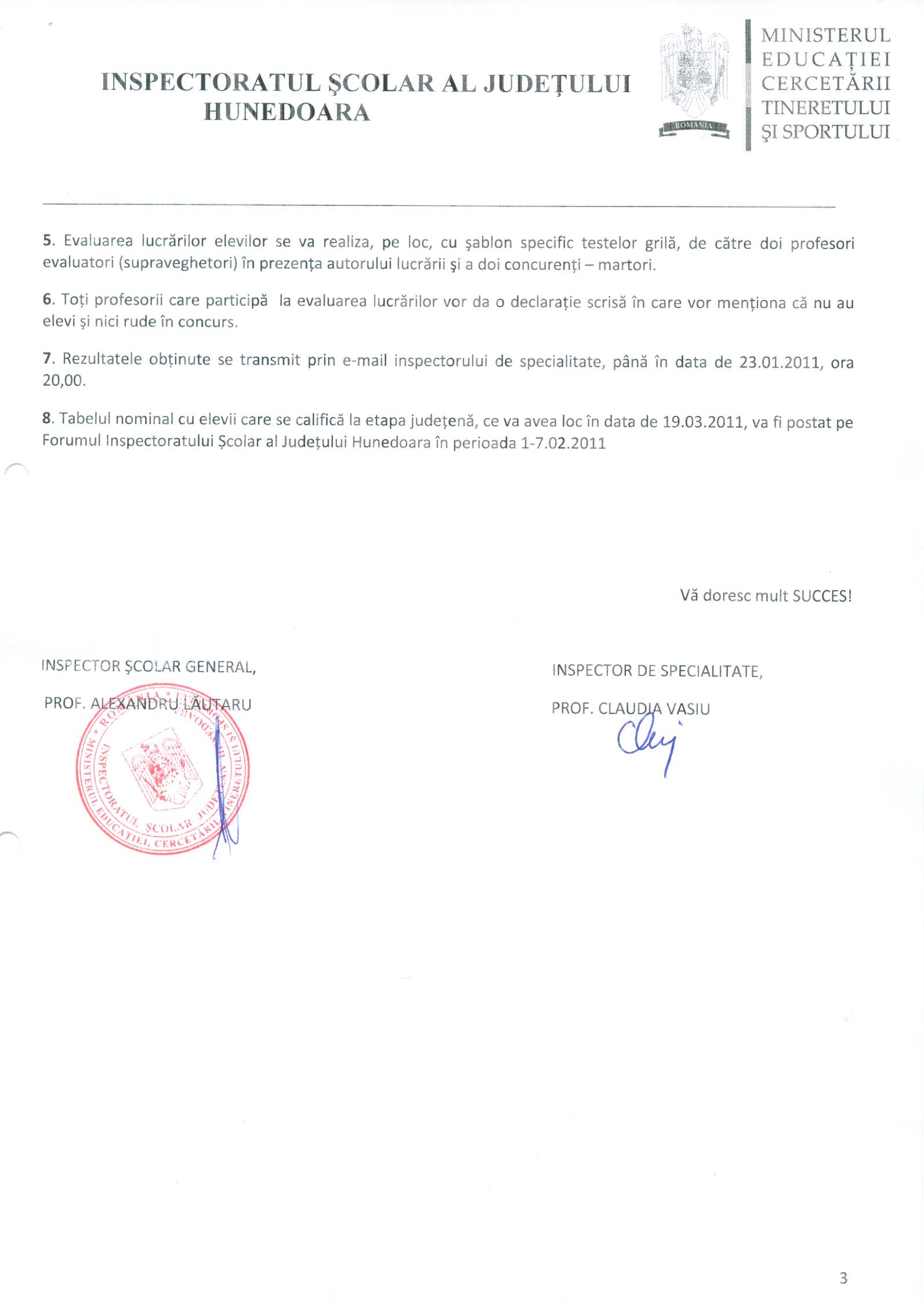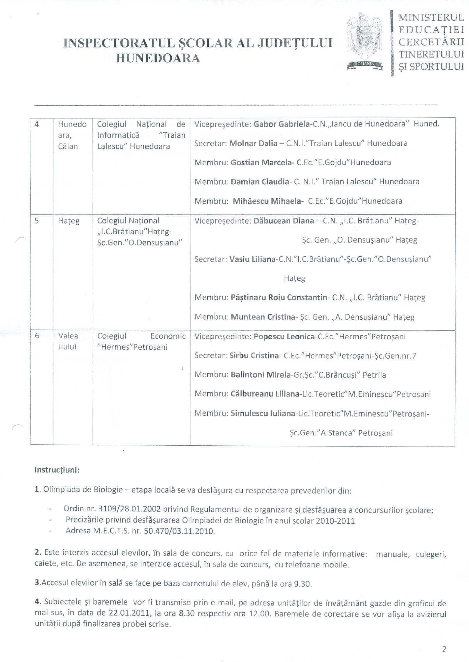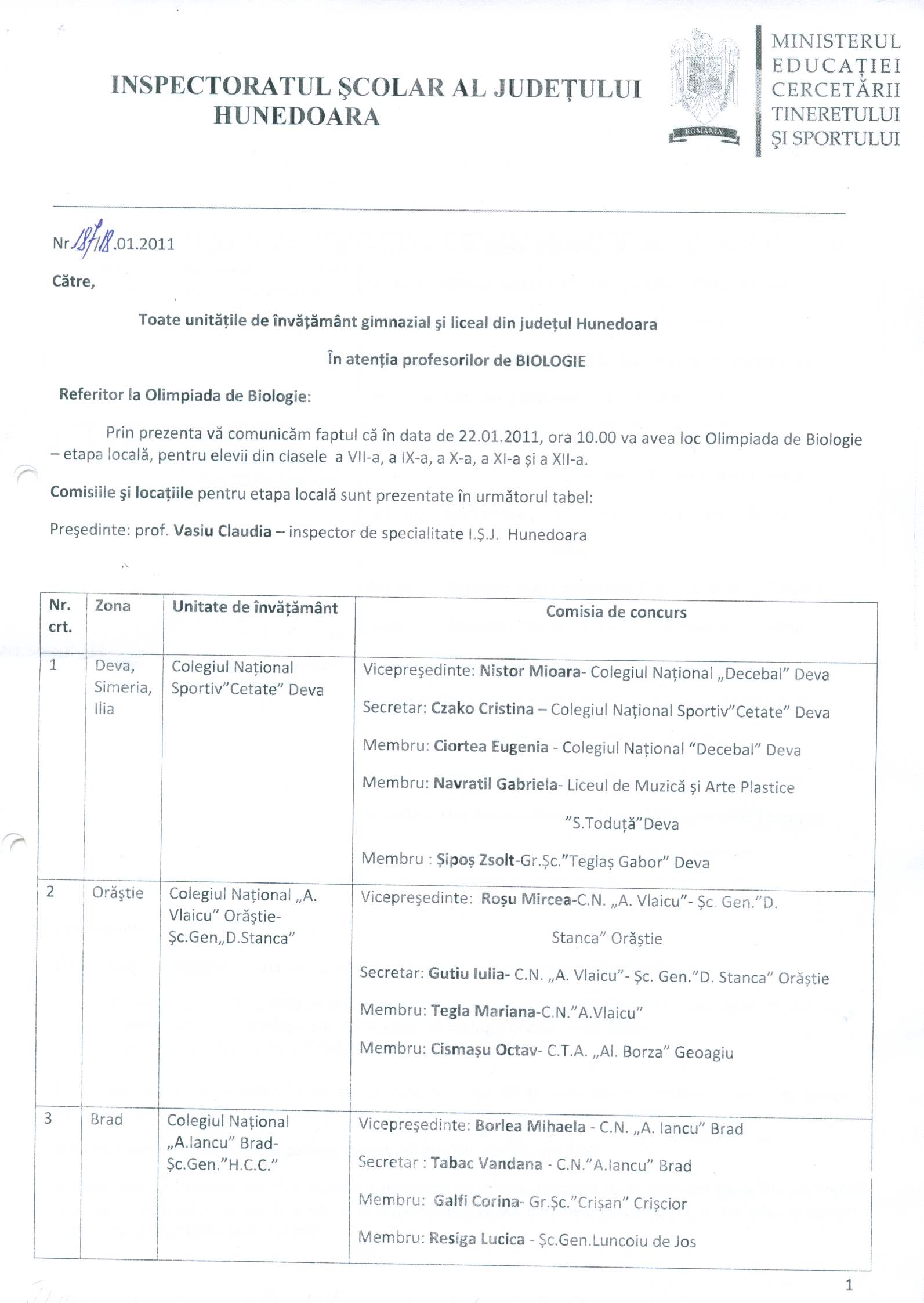 În fișierul atașat sunt informații cu privire la desfășurarea Olimpiadei de Biologie - faza locală, care va avea loc sâmbătă, 22.01.2011, ora 10.00.