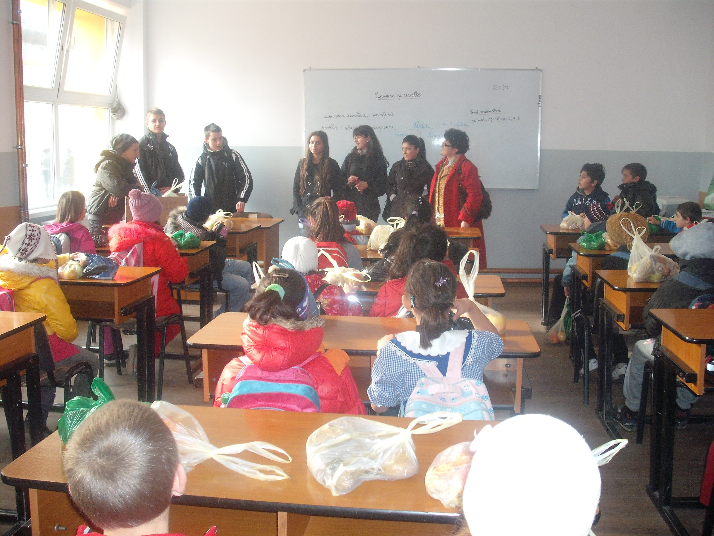 In cadrul scolii noastre campania sa derulat tinand cont de urmatoarele etape: promovarea campaniei in randul elevilor si parintilor prin postere si proverbe despre darnicie, identificarea familiilor aflate in dificultate ( beneficiare ), colectarea si inventarierea produselor precum si inmanarea acestora celor desemnati.