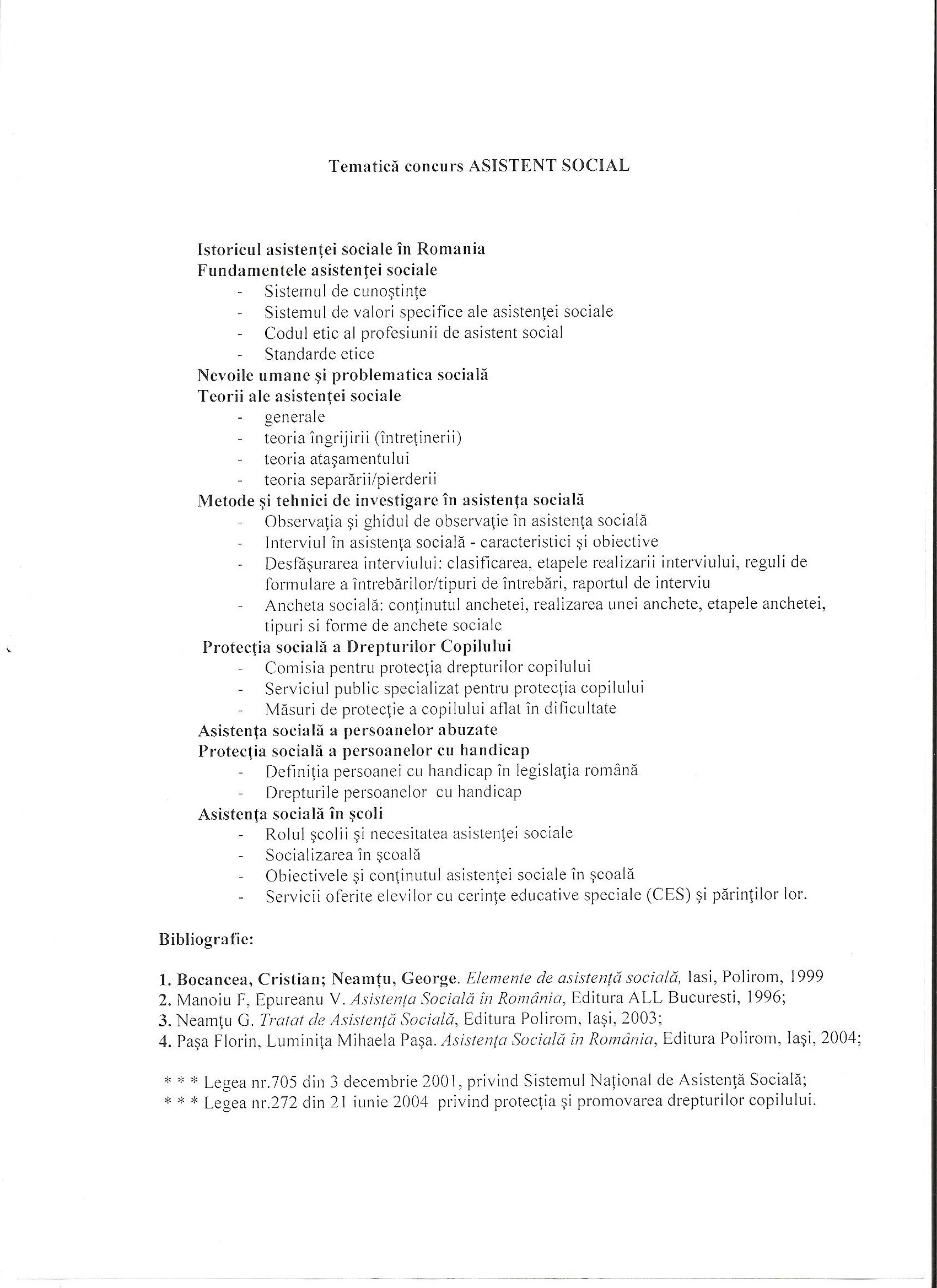 concurs pentru ocuparea postului de asistent social